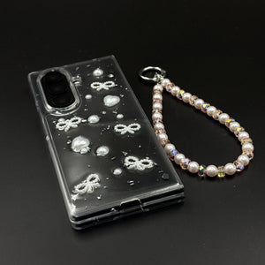 Pearl Butterfly Case with Beaded Charm Strap for Samsung Galaxy Z Fold 7 | Elegant Protective Cover