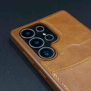 Premium PU Leather Stitch Phone Case for Samsung Galaxy S25 Ultra | Slim Fit with a Wallet/Card Holder