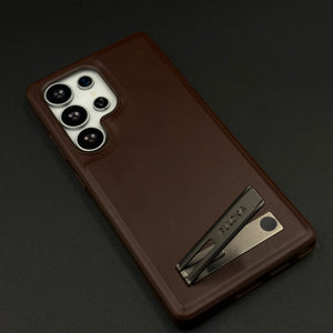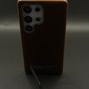 Give your Galaxy S25 Ultra a premium upgrade with this PU Leather Metal Kickstand Case. Designed for elegance and functionality, it features a smooth leather texture with a built-in metal stand and a soft microfibre interior to protect your device from scratches.