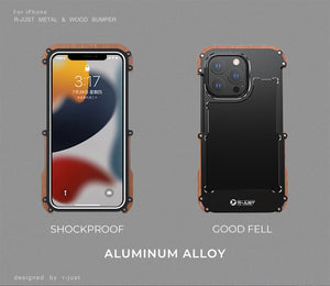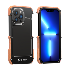 R-Just Aluminum & Natural Wood Bumper iPhone 13 Pro Max Case Cover