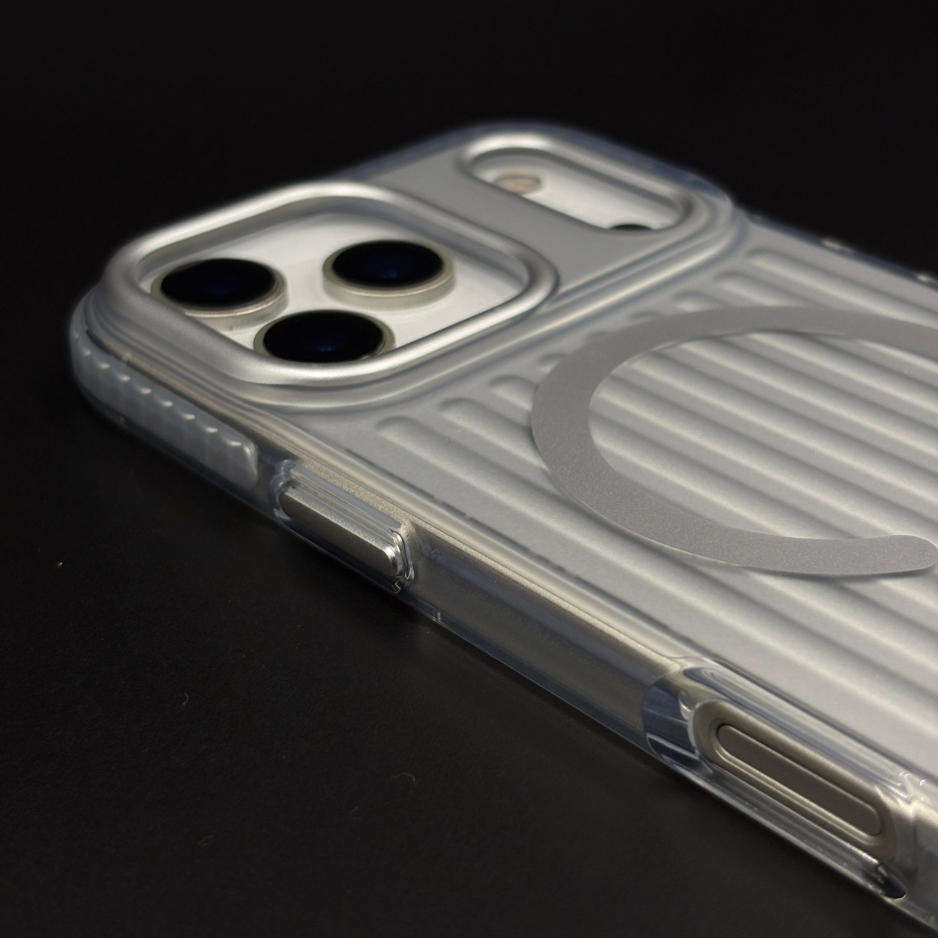 Refresh your iPhone 17 Series with the Ridge MagSafe case—defined by bold dimensional grooves, smooth translucent finish, and a built-in magnetic ring. Designed for a crisp, clean look that complements every shade and every style.