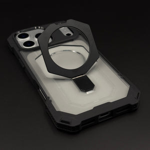 Give your iPhone 17 series rugged protection with this shockproof magnetic ring stand case, featuring reinforced corners, a semi-transparent back, and a 360° rotating metal ring that works as both MagSafe-compatible mount and kickstand.