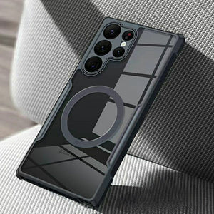 Samsung Galaxy S22 Ultra Magsafe Airbags Bumper Transparent Back Case Cover Black