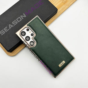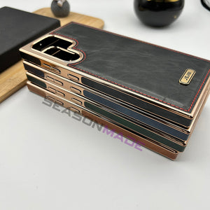 Samsung Galaxy S22 Ultra PU Leather Chrome Plated Case Cover