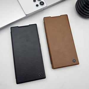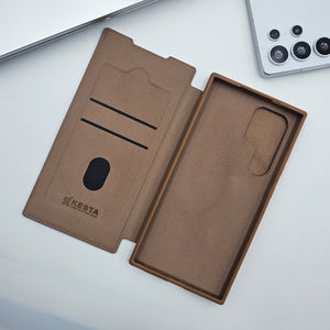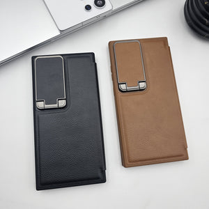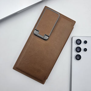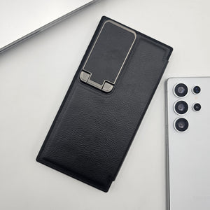 Samsung Galaxy S23 Ultra Flip Card Holder Leather Foldable Metal Stand Case