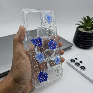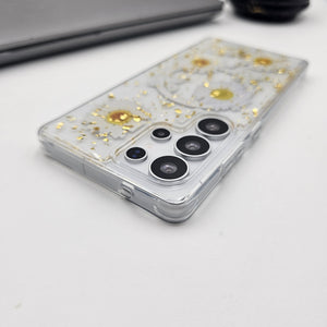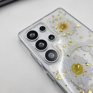 Samsung Galaxy S23 Ultra Floral Non Yellow Glitter Magsafe Silicone Case