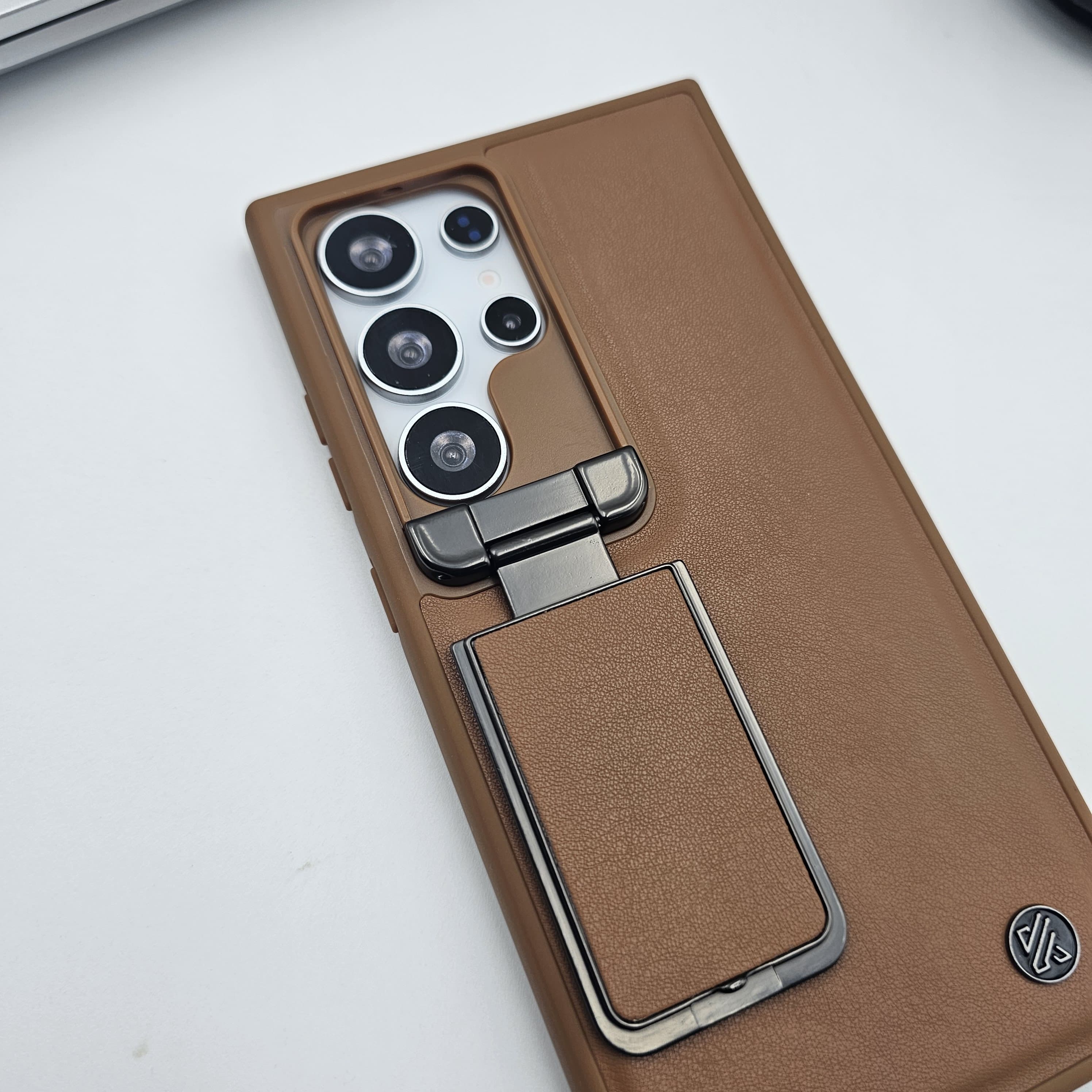 Samsung Galaxy S23 Ultra Leather Foldable Metal Stand Camera Protection Case