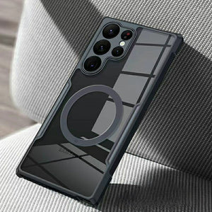Samsung Galaxy S23 Ultra Magsafe Airbags Bumper Transparent Back Case Cover Black