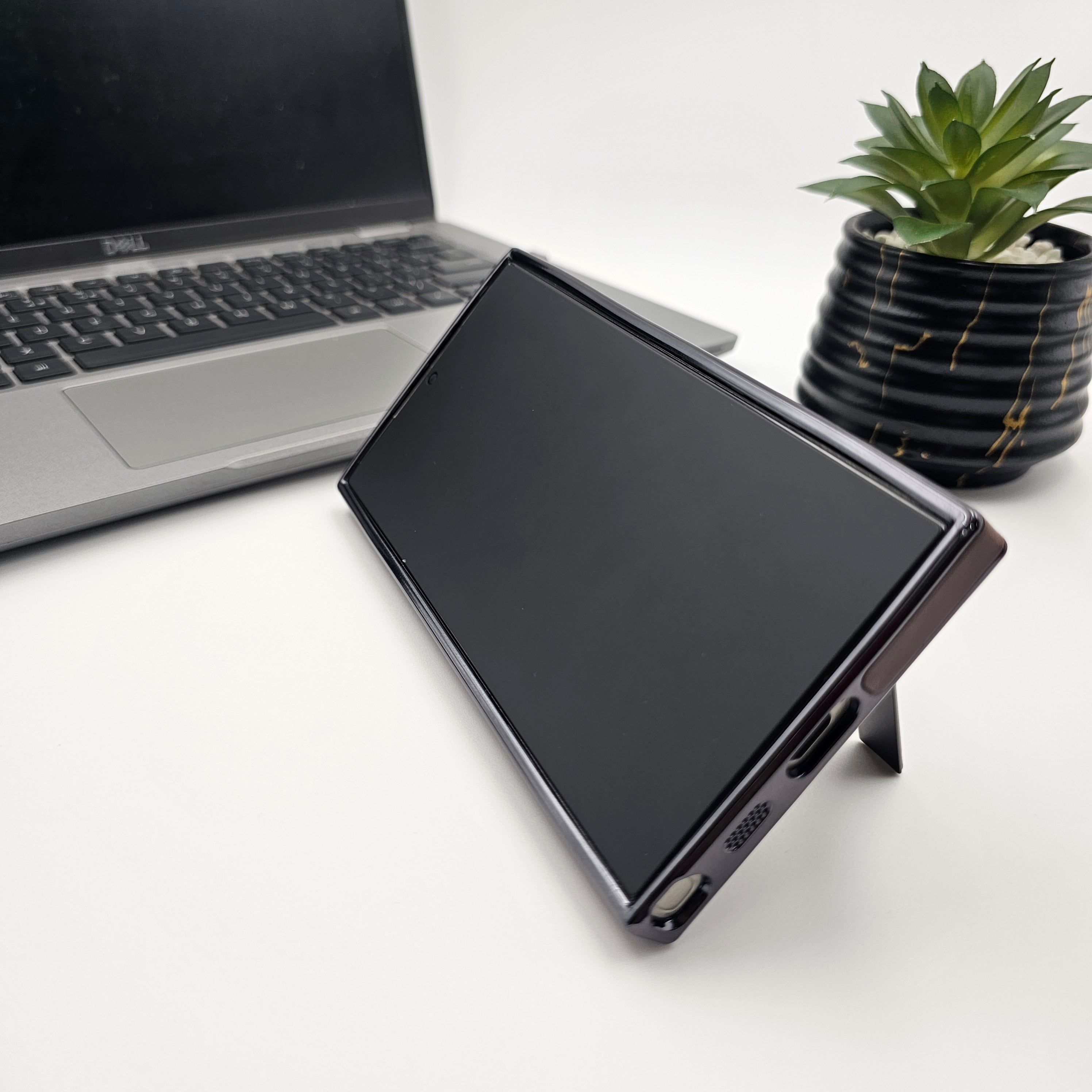 Samsung Galaxy S23 Ultra PU Leather Kickstand Chrome Case