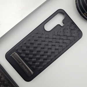 Samsung Galaxy S24 Leather Checks Grid Pattern Kickstands Case