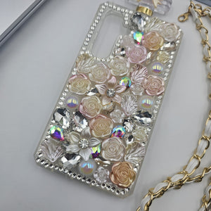 - 3D Luxury Sparkle Glitter Diamond Crystal Rhinestone Floral Charm Pendant Protective Case