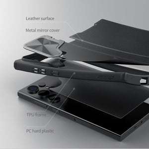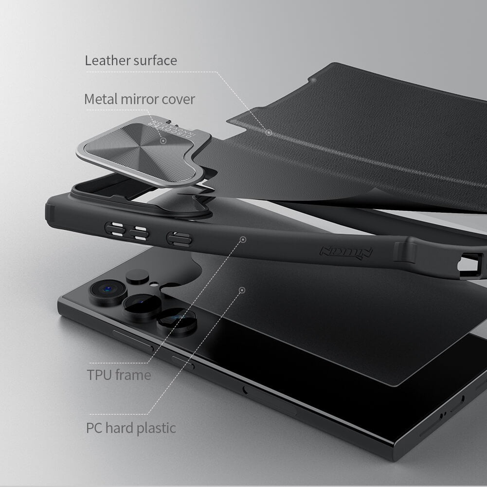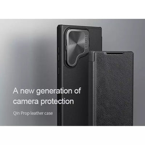 Samsung Galaxy S24 Ultra Camera Protection Nillkin Qin Prop Leather Flip Cover BLACK