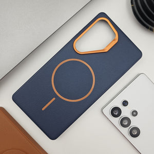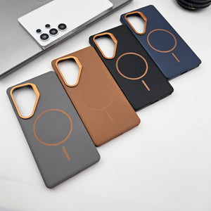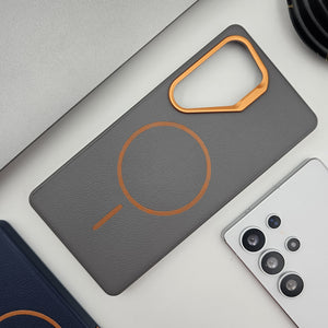 Samsung Galaxy S24 Neon Orange Metal Bump Leather Magnetic Magsafe Case