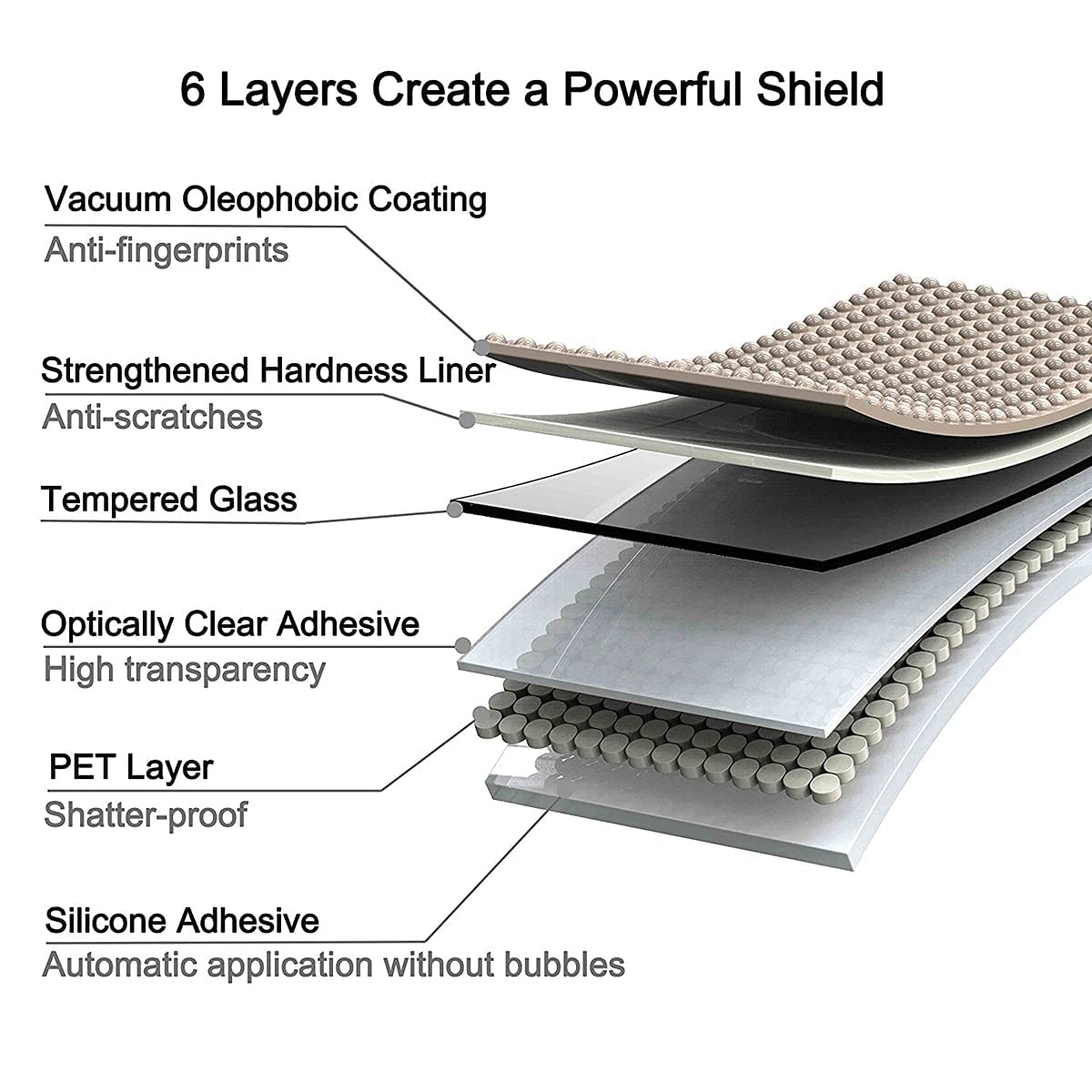 - Shock-Absorbing Impact Protection - Made with advanced shock-absorbing impact technology that has an adhesive, honey-comb structure that strengthens the surface of the screen protector, making it over 10% stronger than the original, and survives drops up to 6 feet.