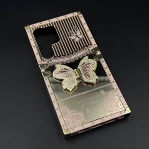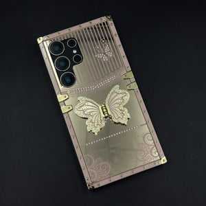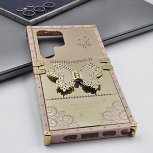 Luxury Butterfly Trunk Case for Samsung Galaxy S25 Ultra | Gold Mirror Finish | Diamond Butterfly