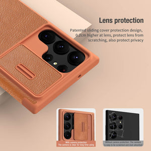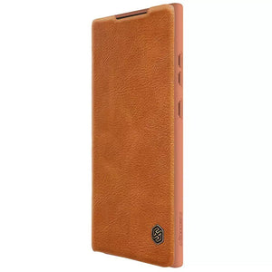 Samsung S25 Ultra Camera Protection QIN Leather Flip Case Brown