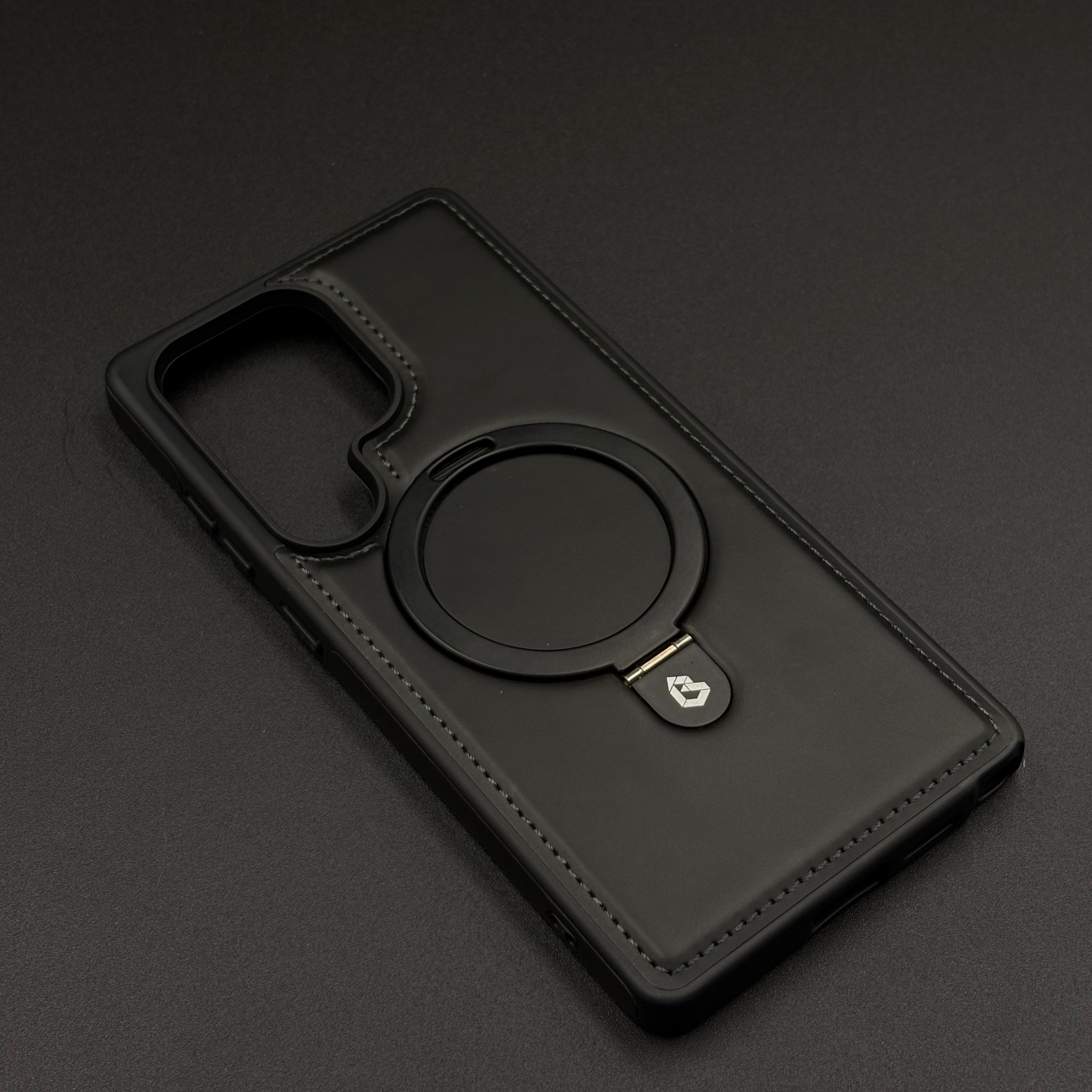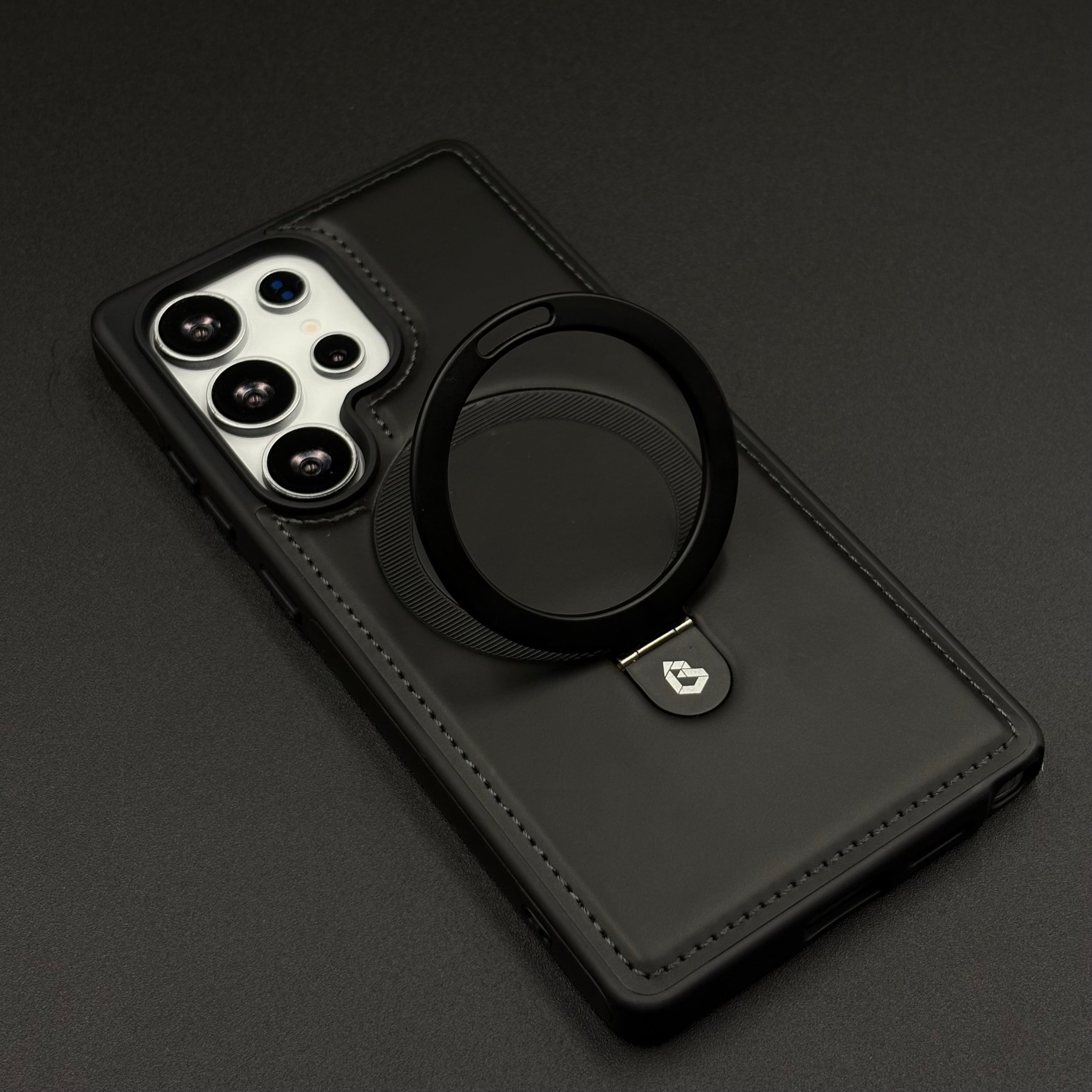 Upgrade your Samsung Galaxy S25 Ultra with a blend of timeless style and modern tech. This premium leather case features a built-in MagSafe-compatible ring stand, combining elegance with utility for your on-the-go lifestyle. Designed for those who demand both sophistication and convenience.