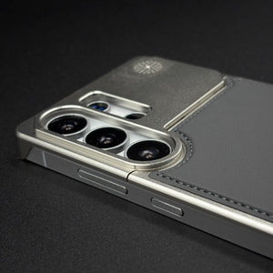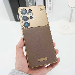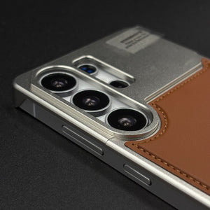 AeroFlex Aluminium Leather Case with Magsafe for Samsung Galaxy S25 Ultra | Premium Metallic Frame | Hybrid Back Cover