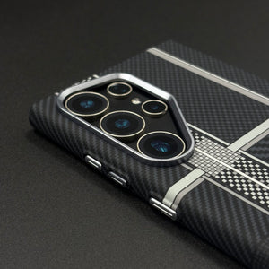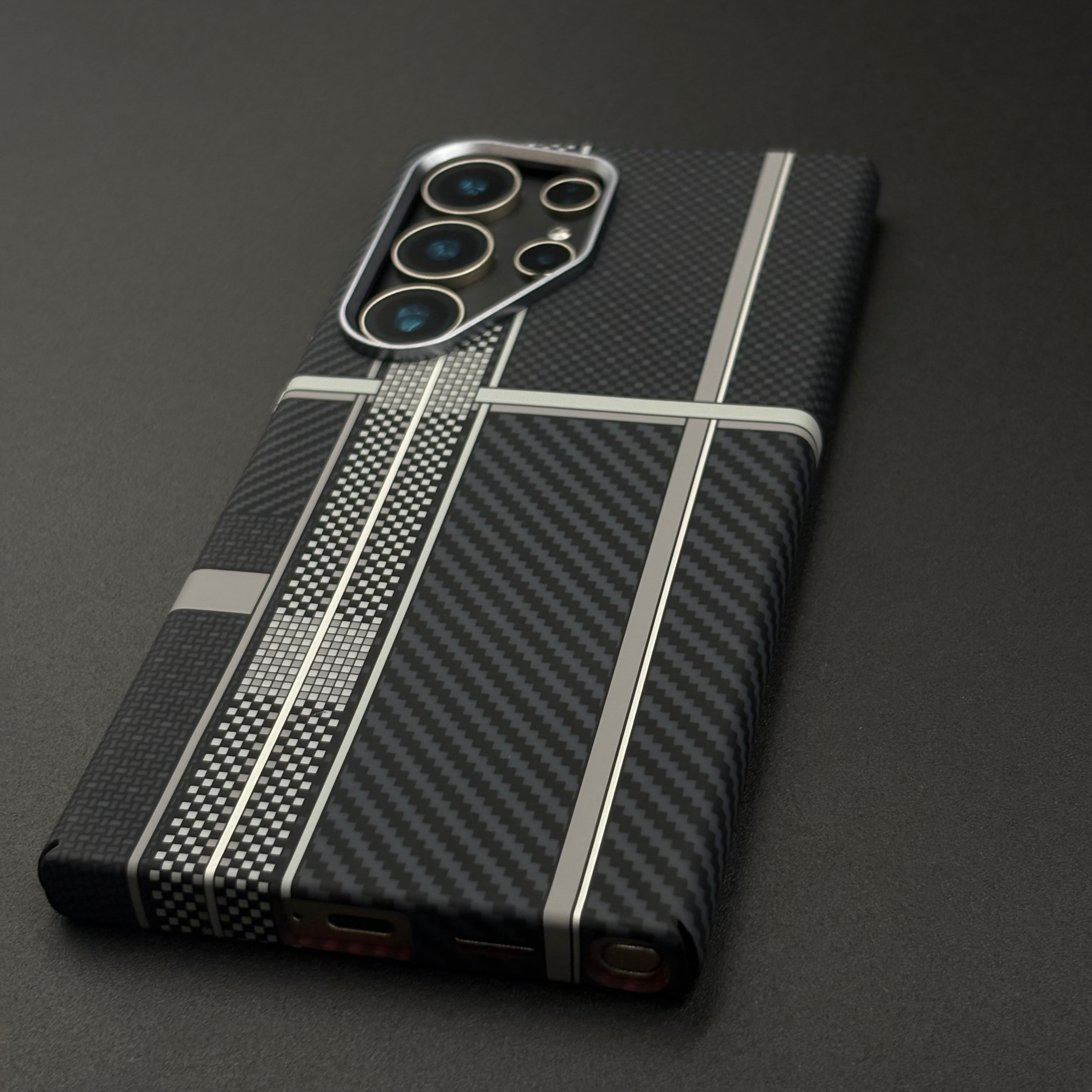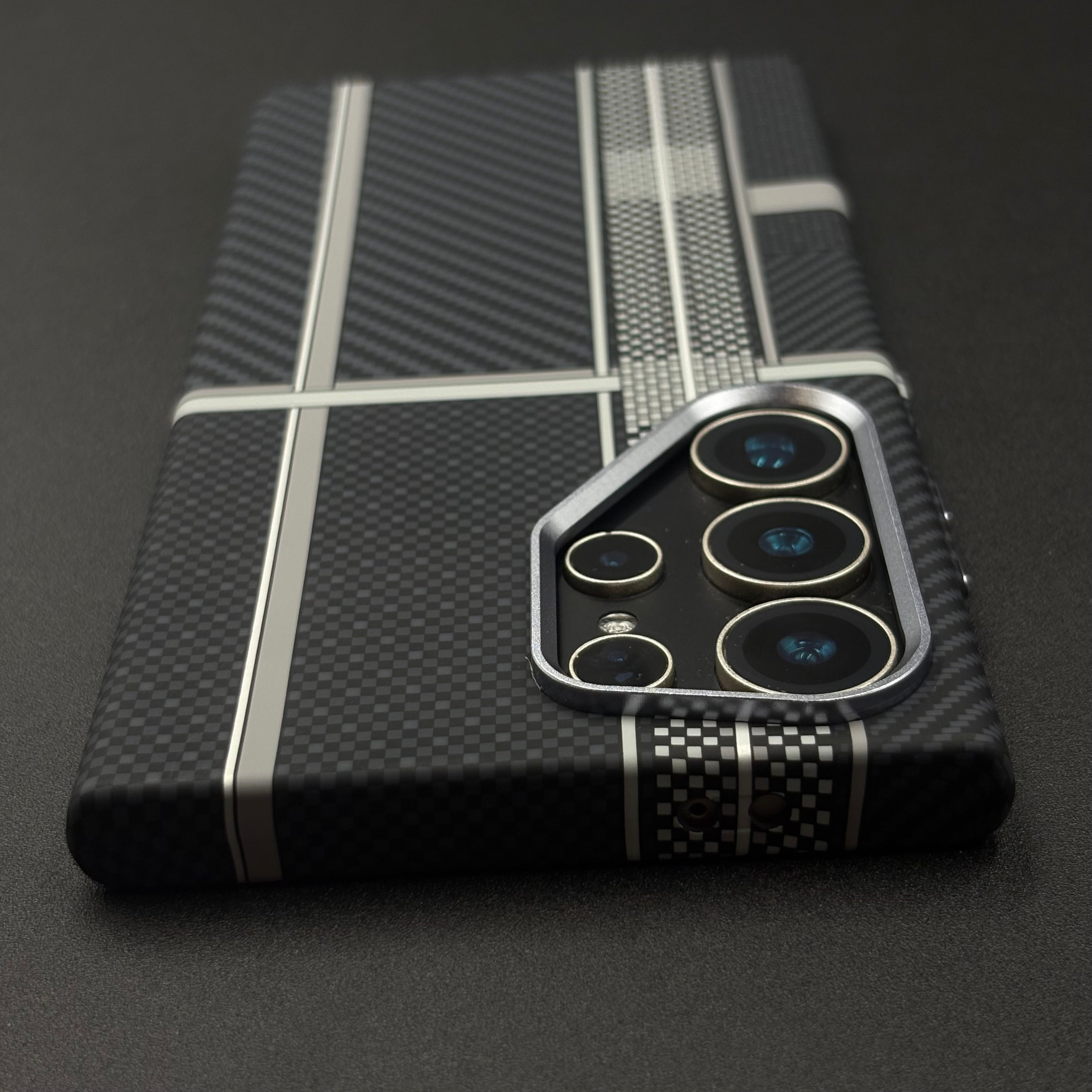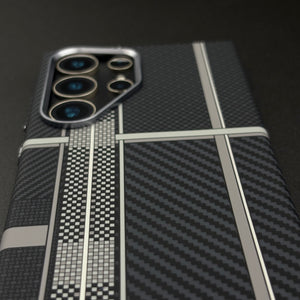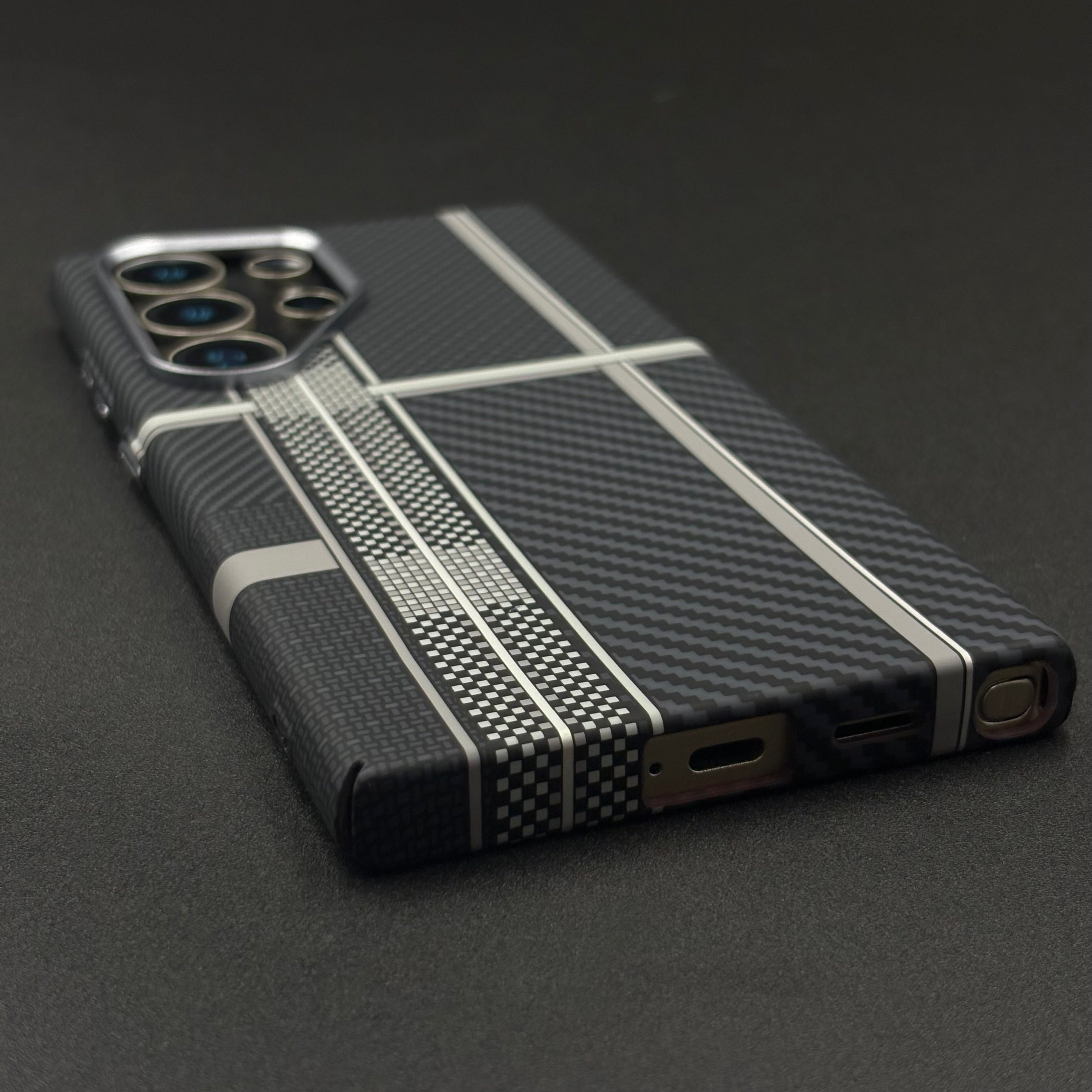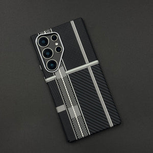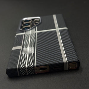 Samsung Galaxy S25 Ultra Striped Black Premium Slim Case | Rare Aramid Texture Finish | Real Carbon Fibre Feel | Hidden MagSafe