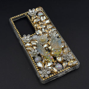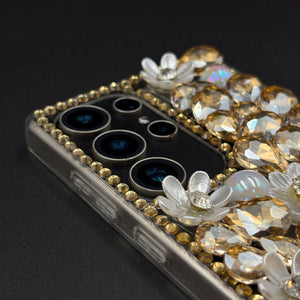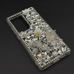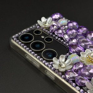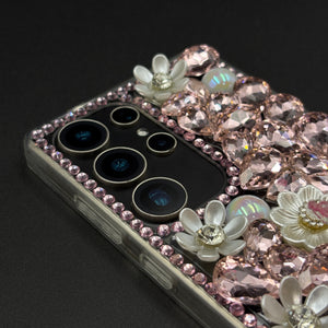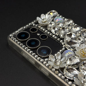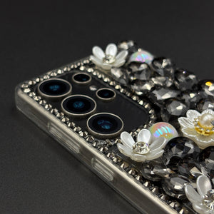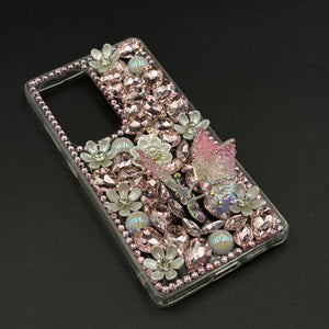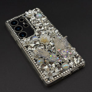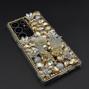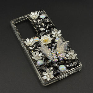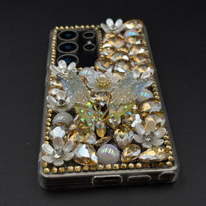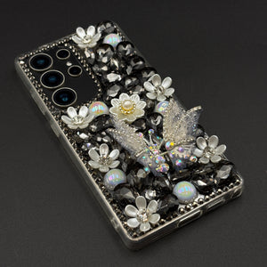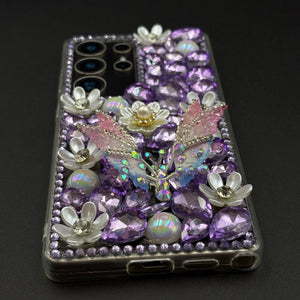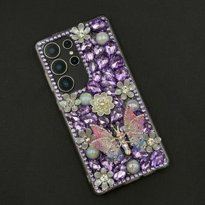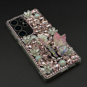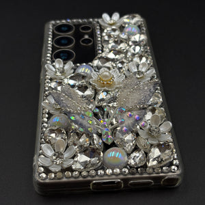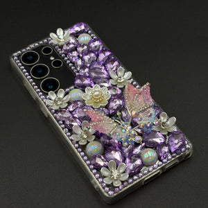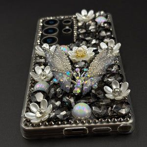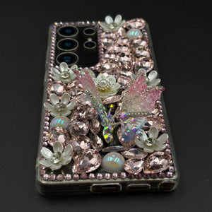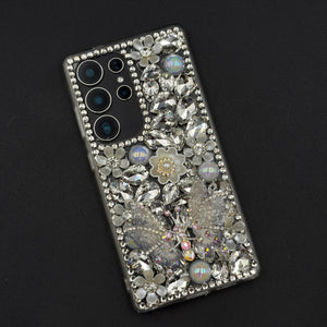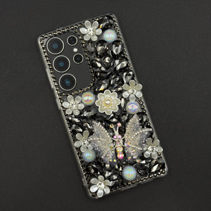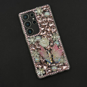 Elevate your phone style with this dazzling rhinestone phone case designed exclusively for the Samsung Galaxy S25 Ultra. Featuring a stunning butterfly and floral motif adorned with shimmering gems, iridescent pearls, and sparkling crystal details, this case is more than protection—it's a statement.