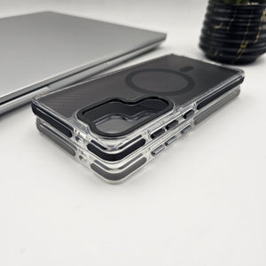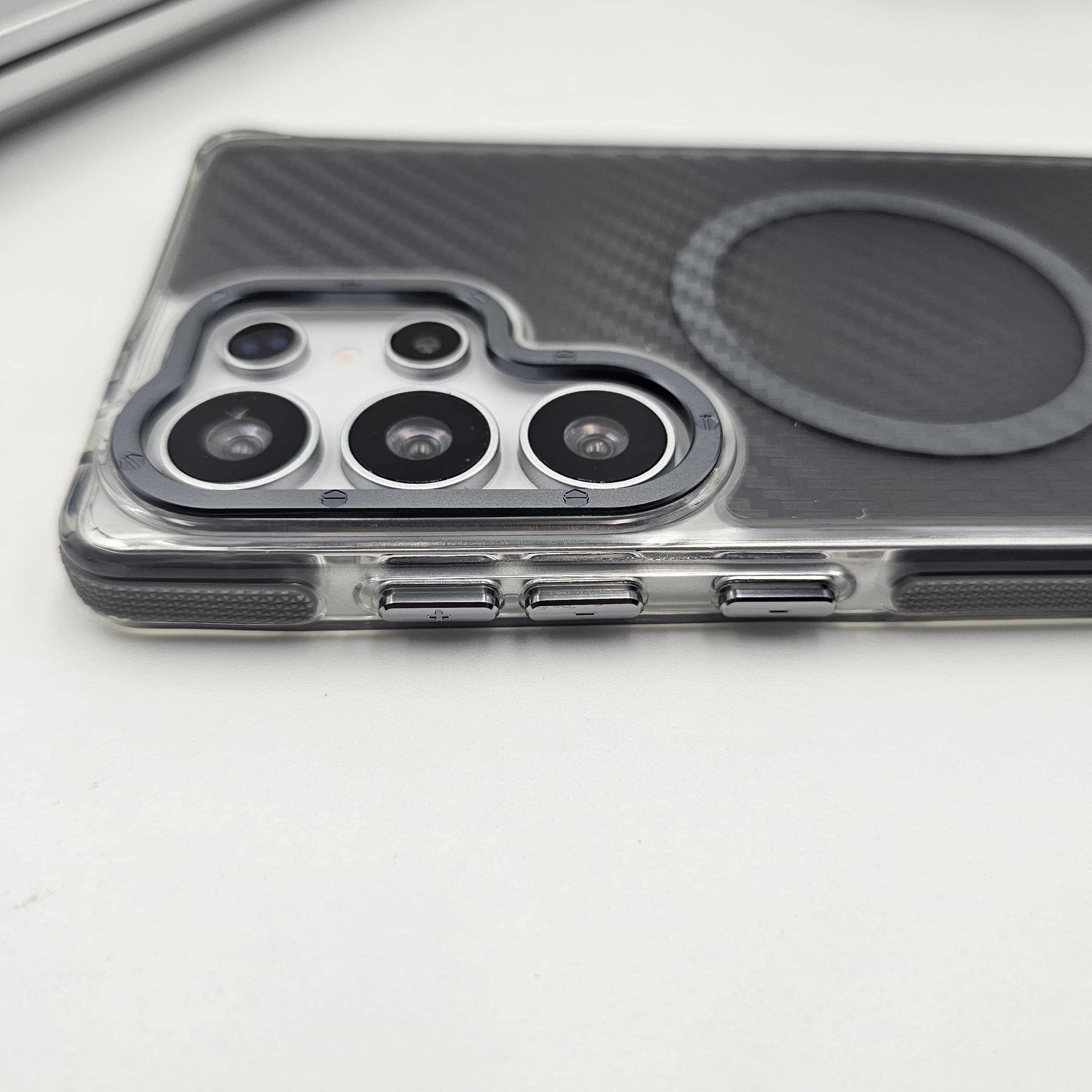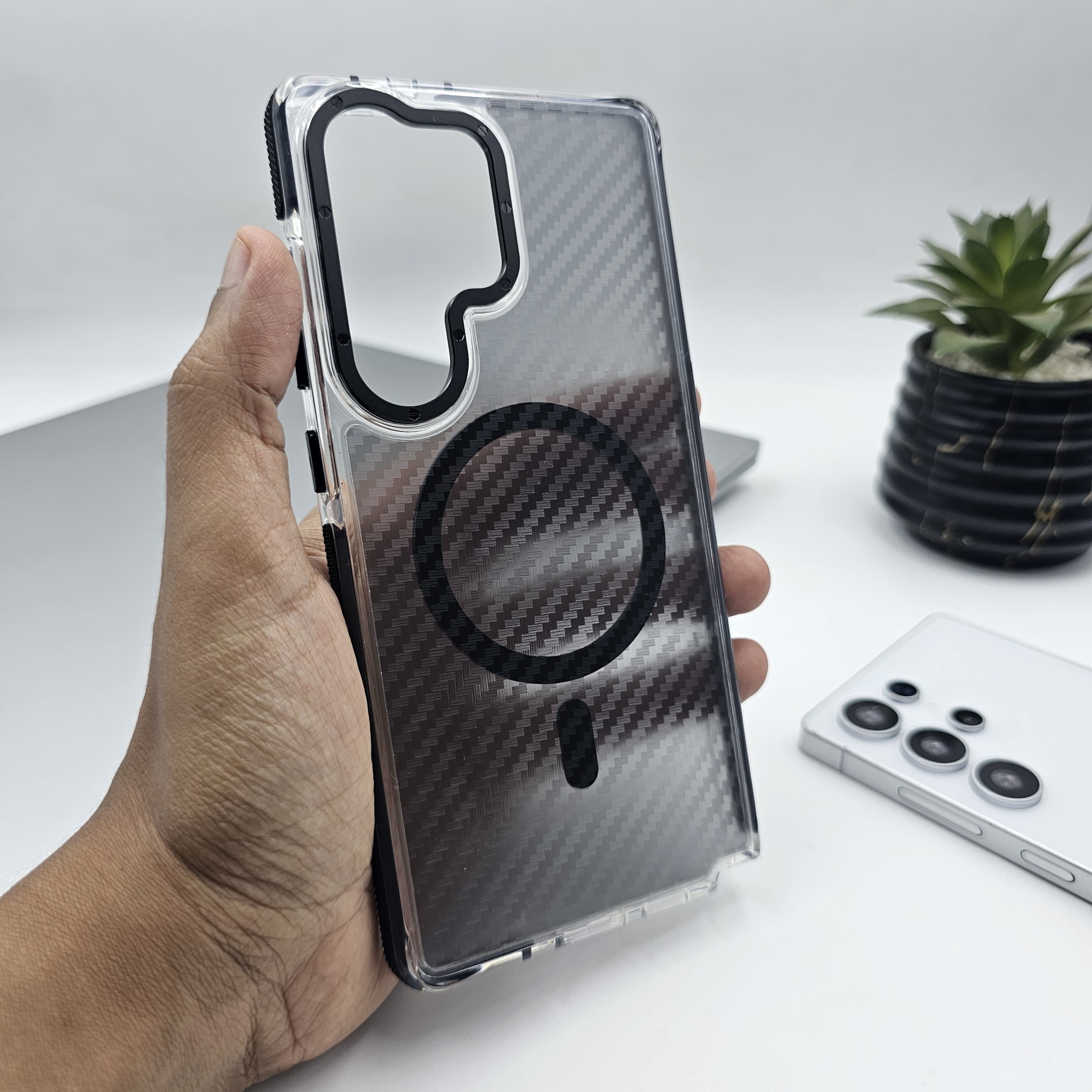 Upgrade your Galaxy S25 Ultra with this smokey carbon fibre MagSafe case. Featuring a matte finish design, it delivers rugged durability, slim fit style, and MagSafe charging compatibility.