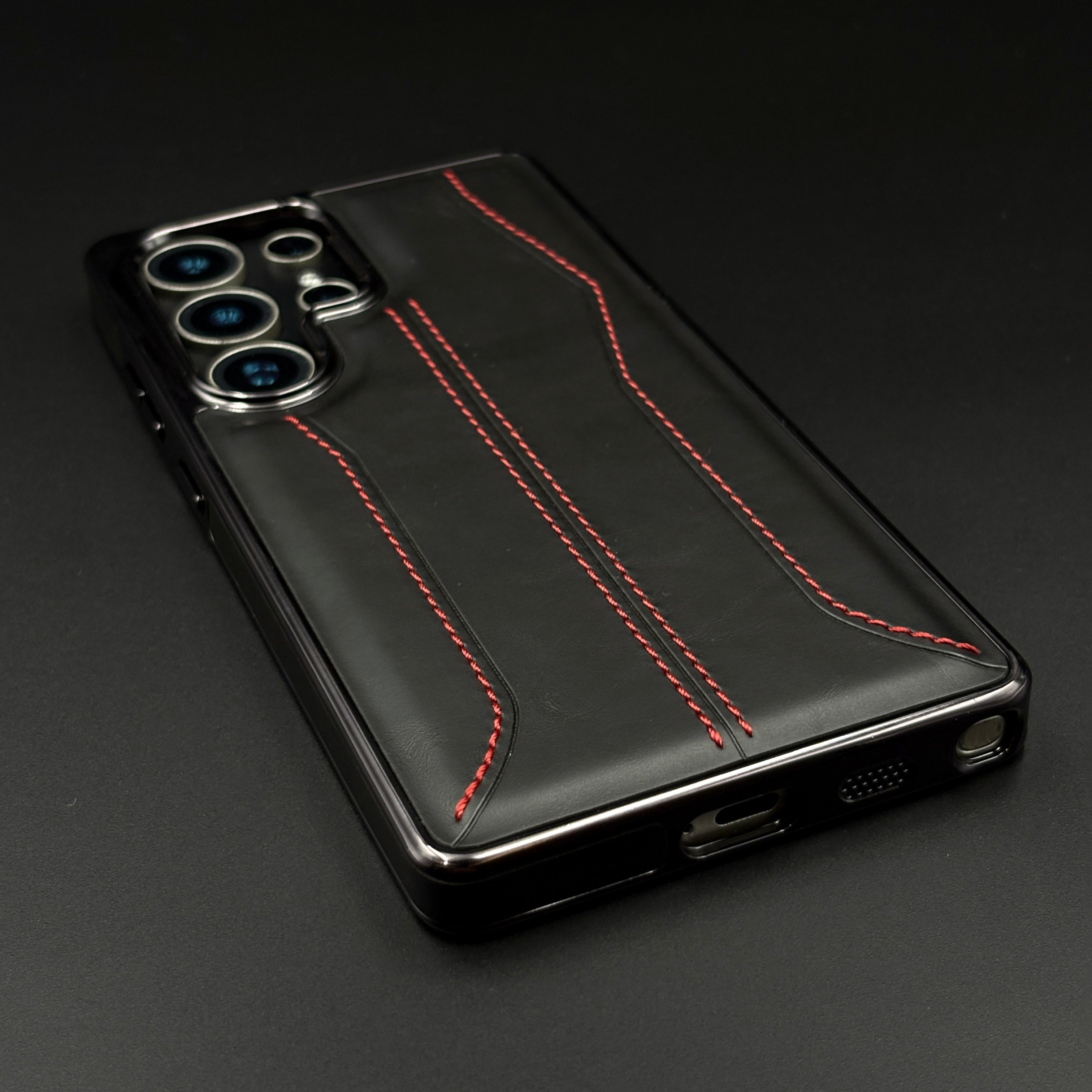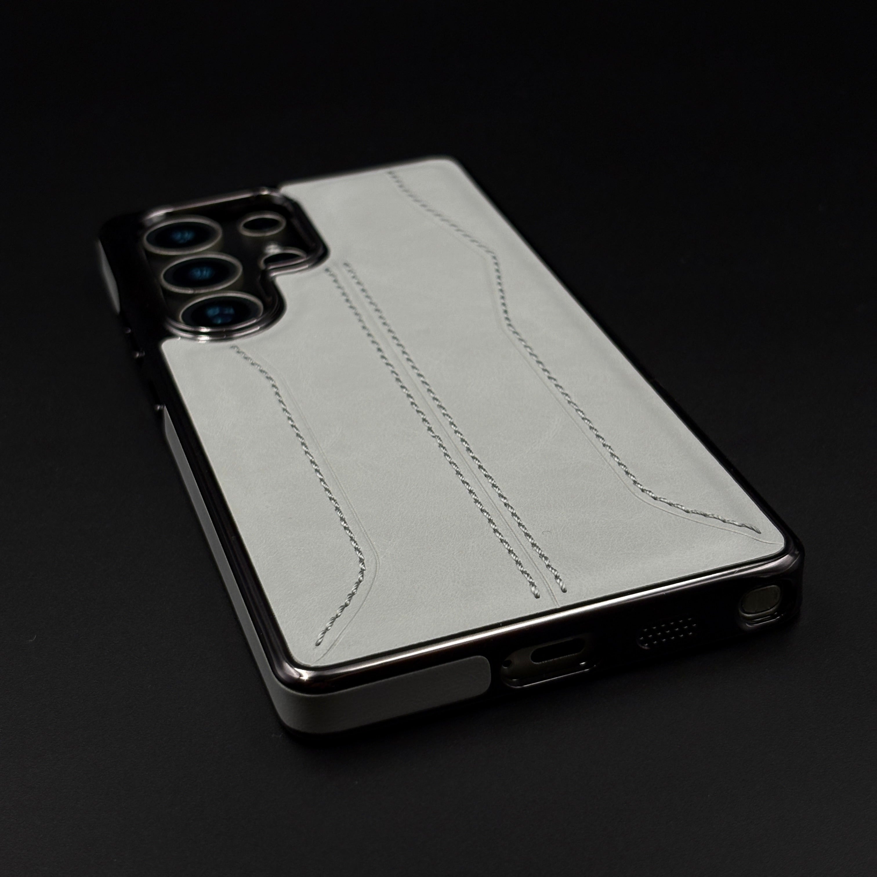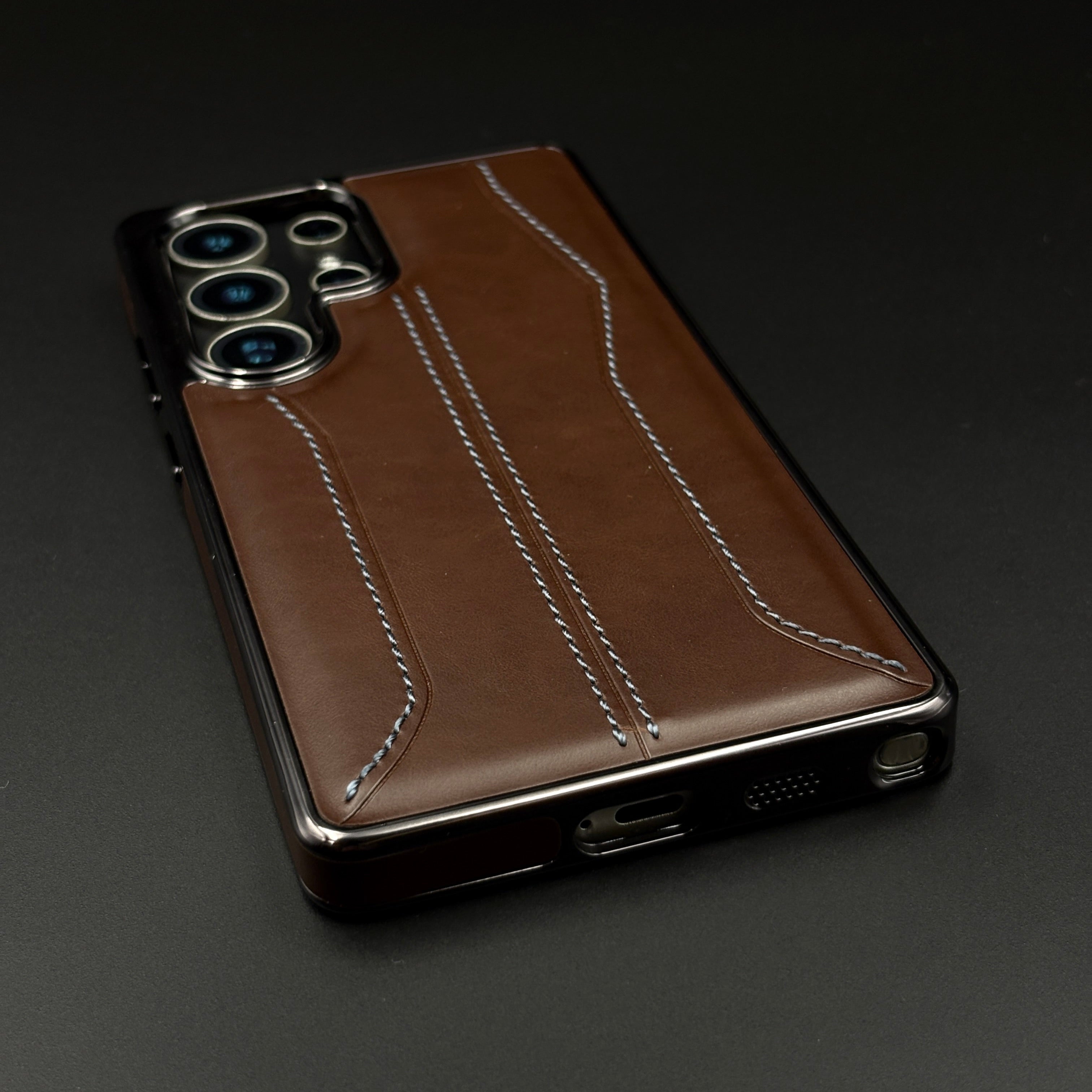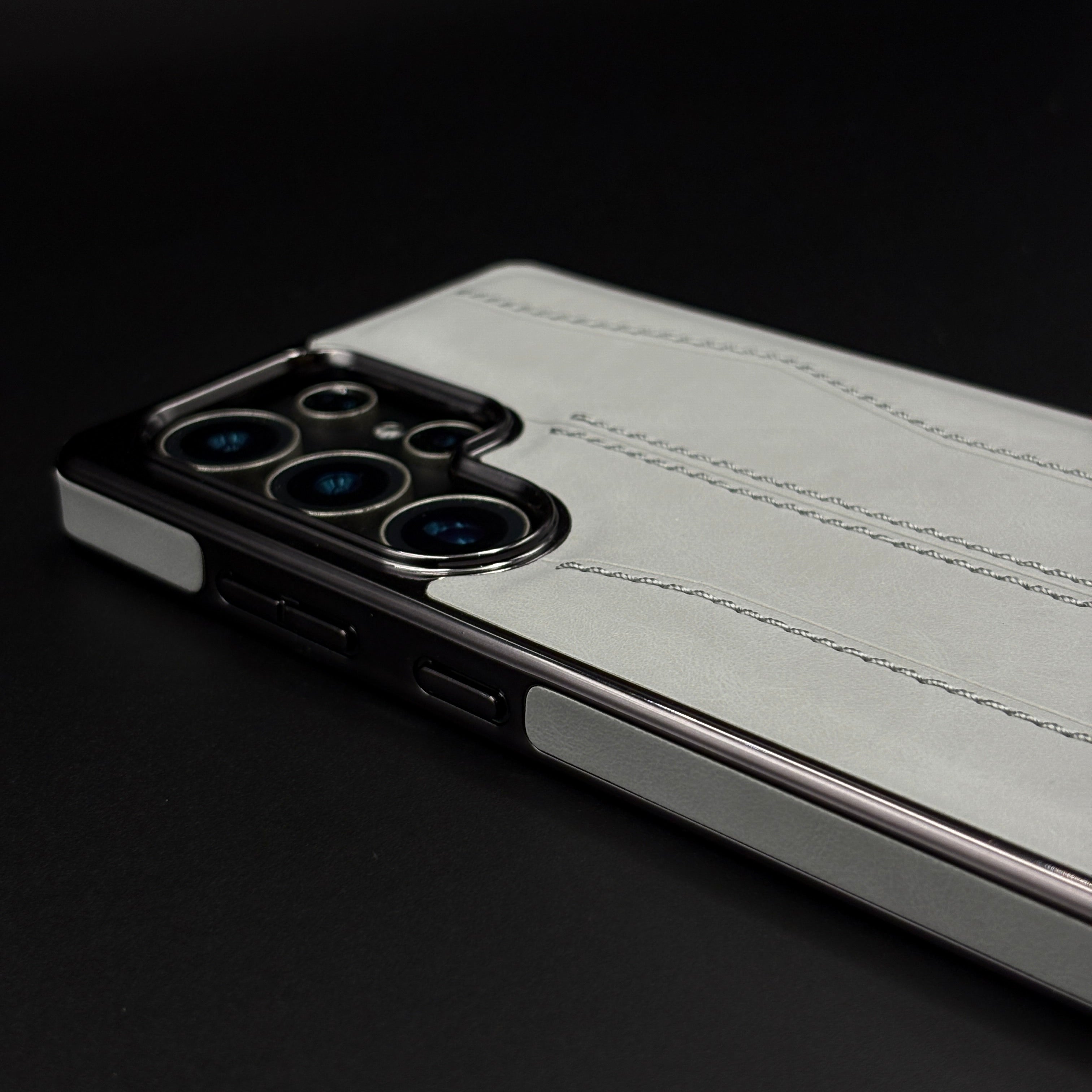 Samsung Galaxy S25 Ultra Stitched Leather Chrome Case
