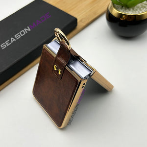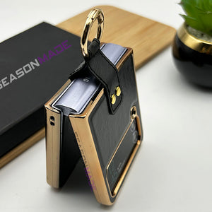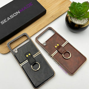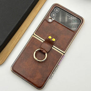 Samsung Galaxy Z Flip 4 Chrome Plated Pu Leather Metal Ring Holder Case Cover