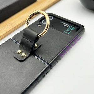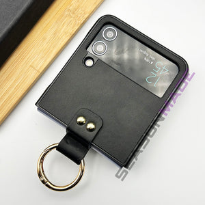 Samsung Galaxy Z Flip 4 Leather Ring Holder Inside Velvet Case Cover Black