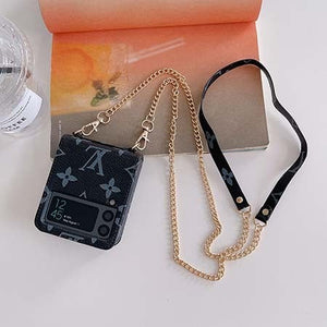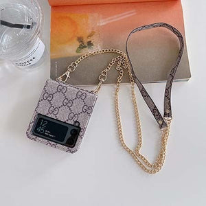 Samsung Galaxy Z Flip 4 Luxury Brand PU Leather Case Cover With Chain Sling Strap