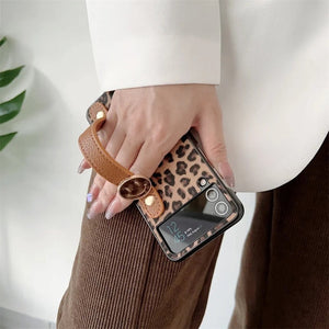Samsung Galaxy Z Flip 4 Luxury Leopard Print Case Cover With Wrist Strap