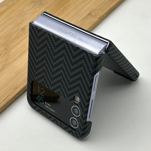 Samsung Galaxy Z Flip 4 Zigzag Carbon Fibre Pattern Texture Case Cover
