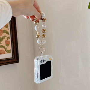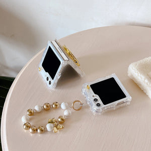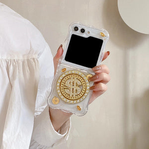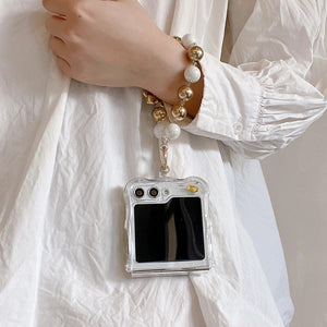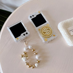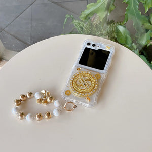 Samsung Galaxy Z Flip 5 Premium Rotation Dollar Bracelet Wristband Pearl Case