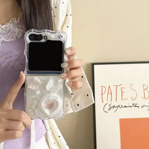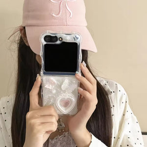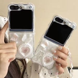 Add a touch of elegance to your Galaxy Z Flip 6 with this Butterfly Heart Case featuring a detachable pearl strap. Designed with 3D embossed details, shimmering textures, and luxury charm elements, this case is perfect for those who love both fashion and protection.