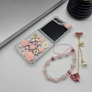 Give your Samsung Galaxy Z Flip 6 a stunning makeover with this luxury pearl & rhinestone bling case 🌸💎. Adorned with 3D flowers, sparkling rhinestones, and elegant pearls, it’s the perfect pick for anyone who loves stylish, head-turning accessories ✨. Comes with a cute matching chain for extra charm and convenience.