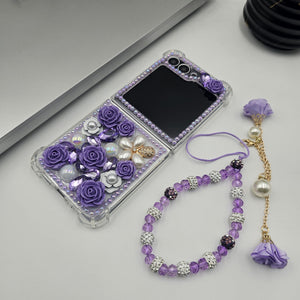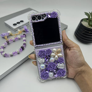 Luxury Pearl Rhinestone Bling Case for Samsung Galaxy Z Flip 6 | Floral 3D Designer Cove