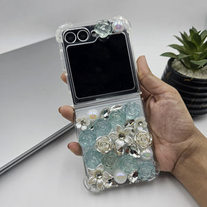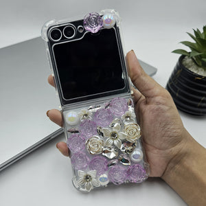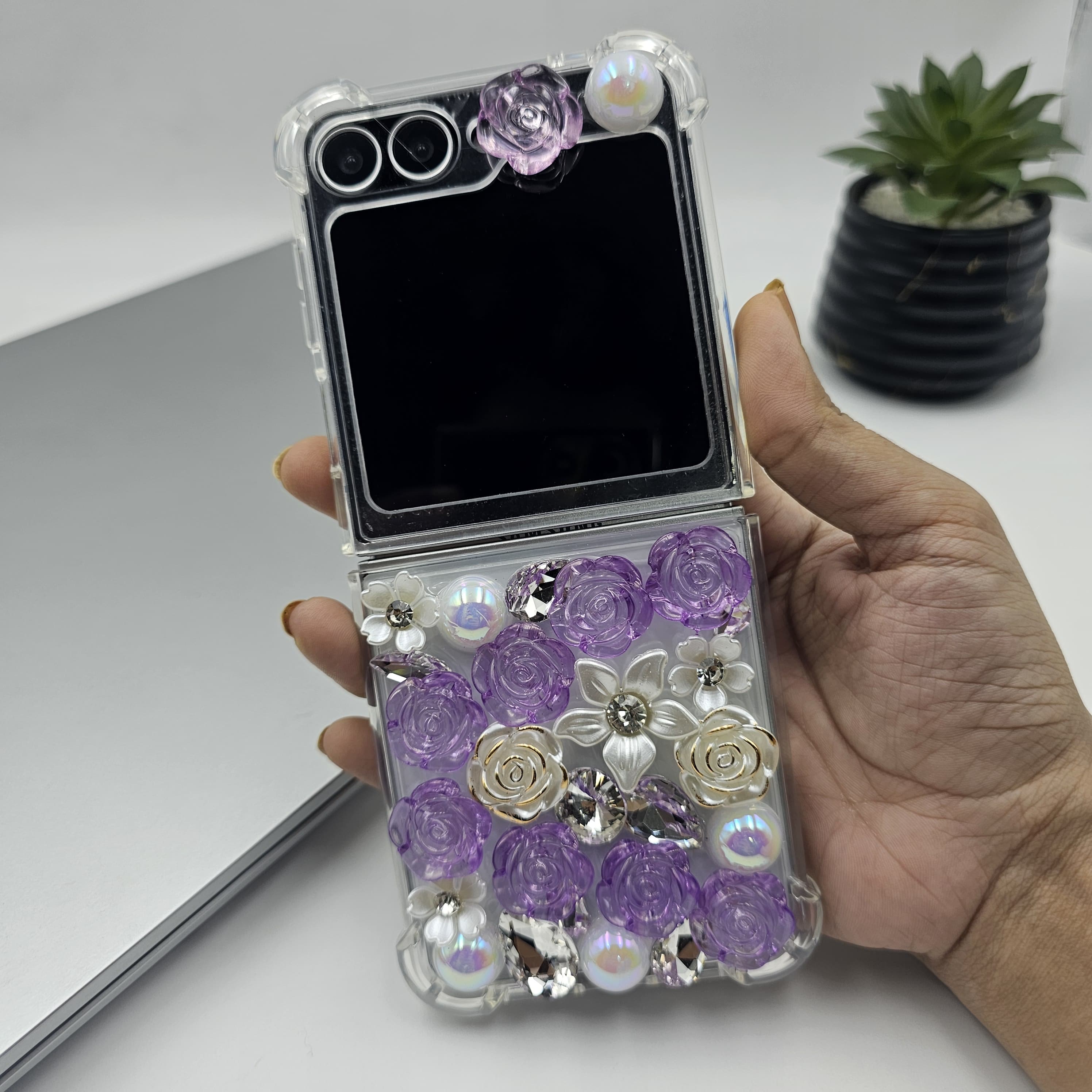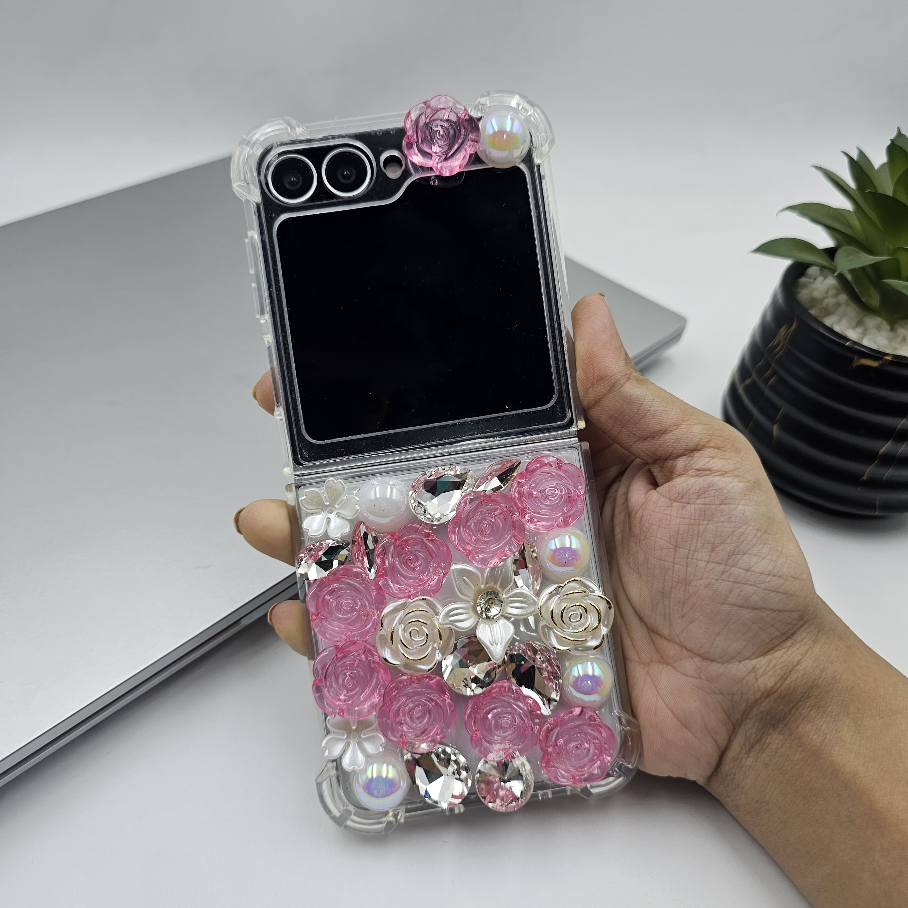 Samsung Galaxy Z Flip 6 Rose Floral Rhinestone Diamond Case