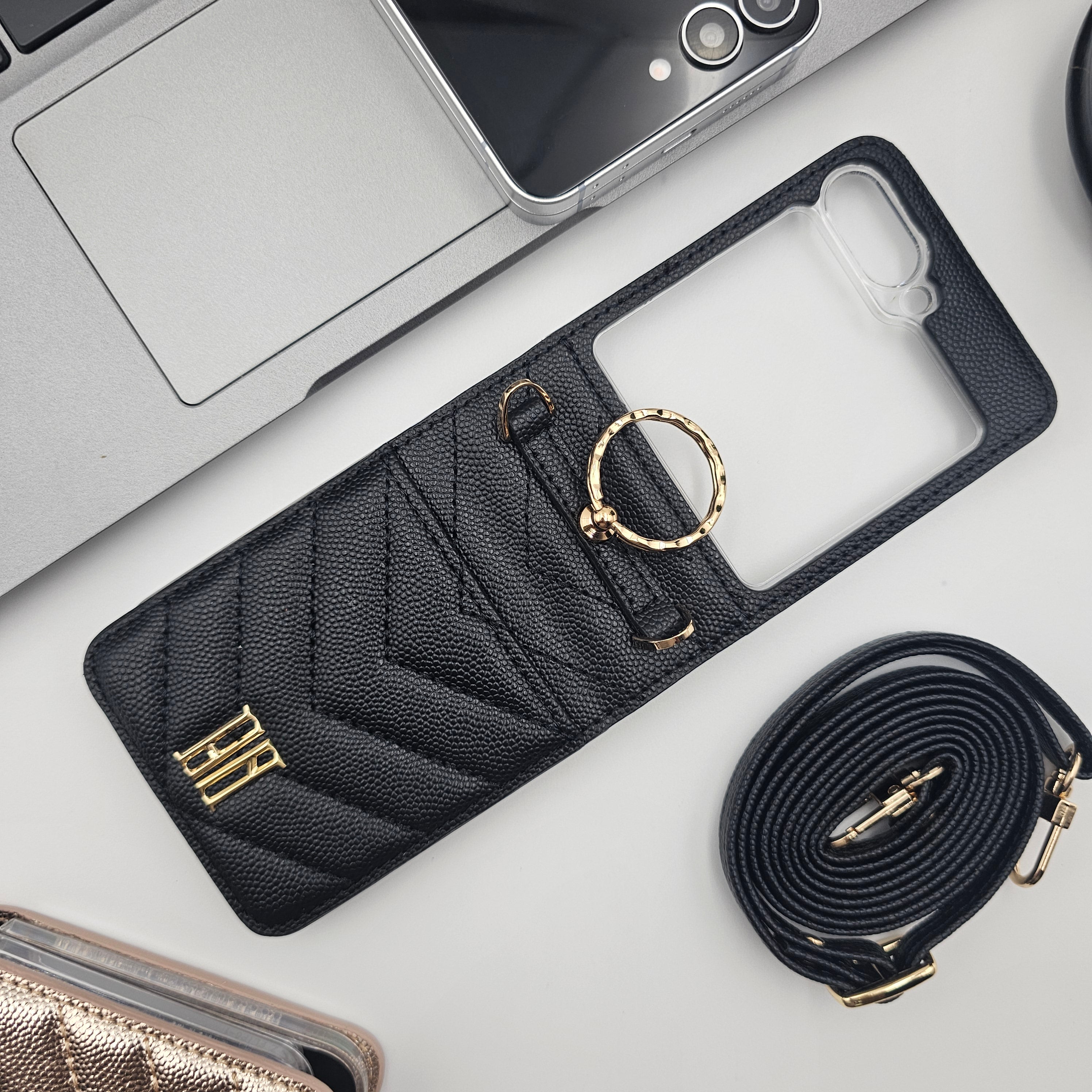 Puffer Cardholder Sling Phone Case Cover for Samsung Galaxy Z Flip 7 FE | Quilted Strap Wallet Cover