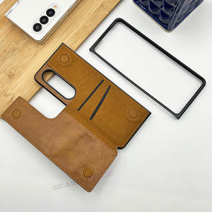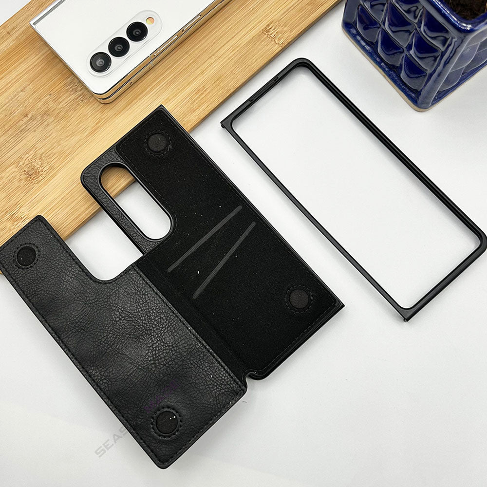 Samsung Galaxy Z Fold 4 Leather Case With Back Side Protective Card Holder Slot