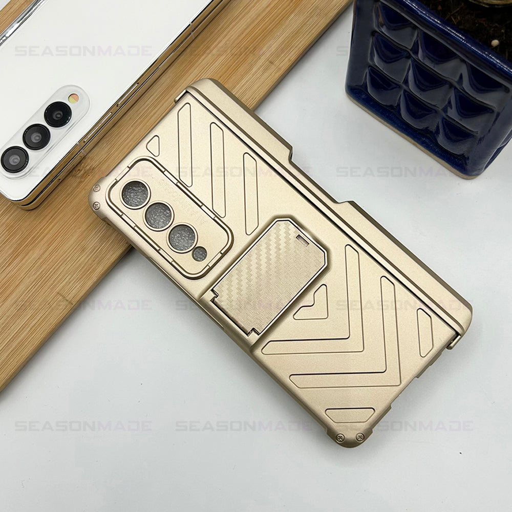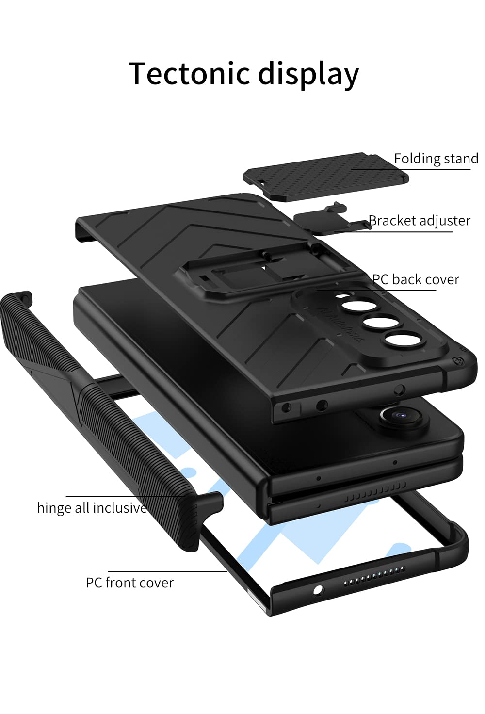 Samsung Galaxy Z Fold 4 with Front Glass Cover Adjustable Kickstand & Hidden Pen Holder Case Cover