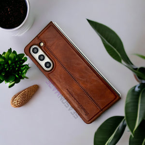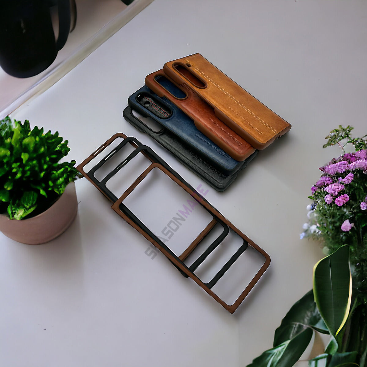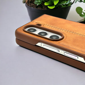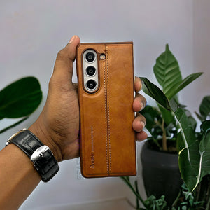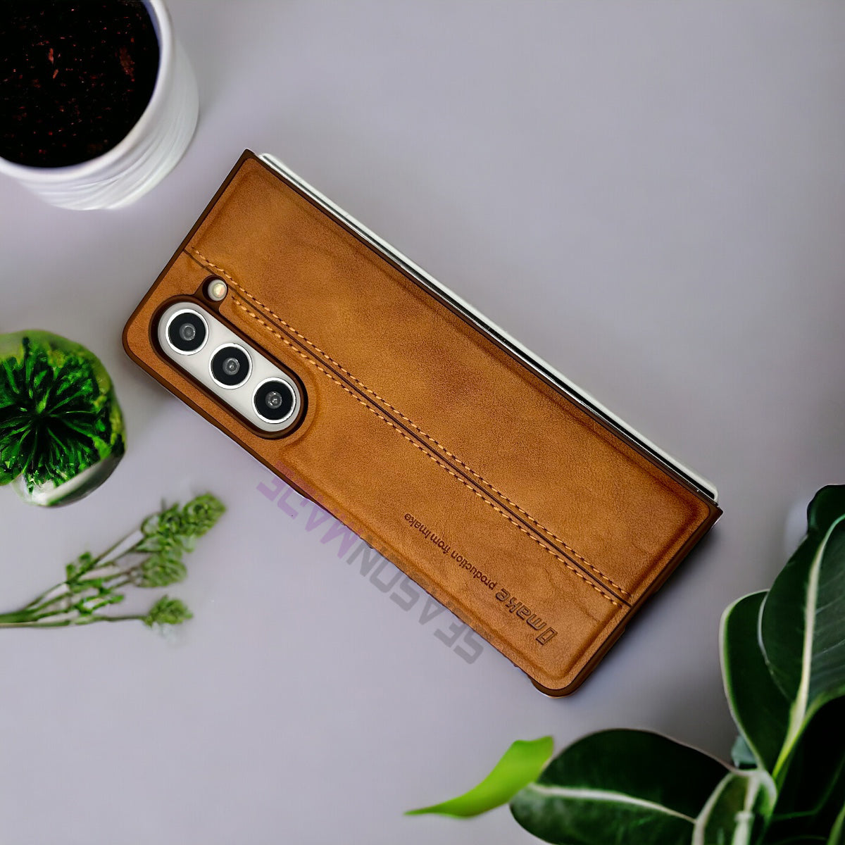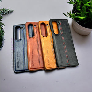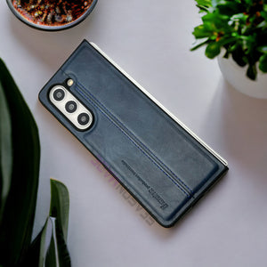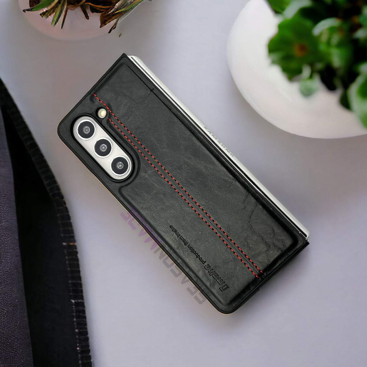 Samsung Galaxy Z Fold 5 PU Leather Stitched Case With Inside Velvet Cover