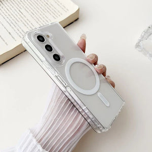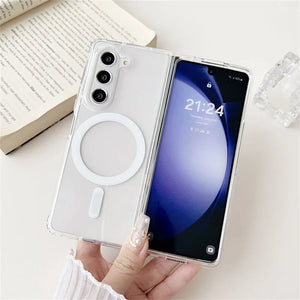 ✨ Showcase the elegant design of your Samsung Galaxy Z Fold 5 with a crystal-clear case that brings more than just looks. Equipped with a built-in MagSafe ring, it ensures seamless magnetic charging and secure attachment for all your MagSafe accessories.