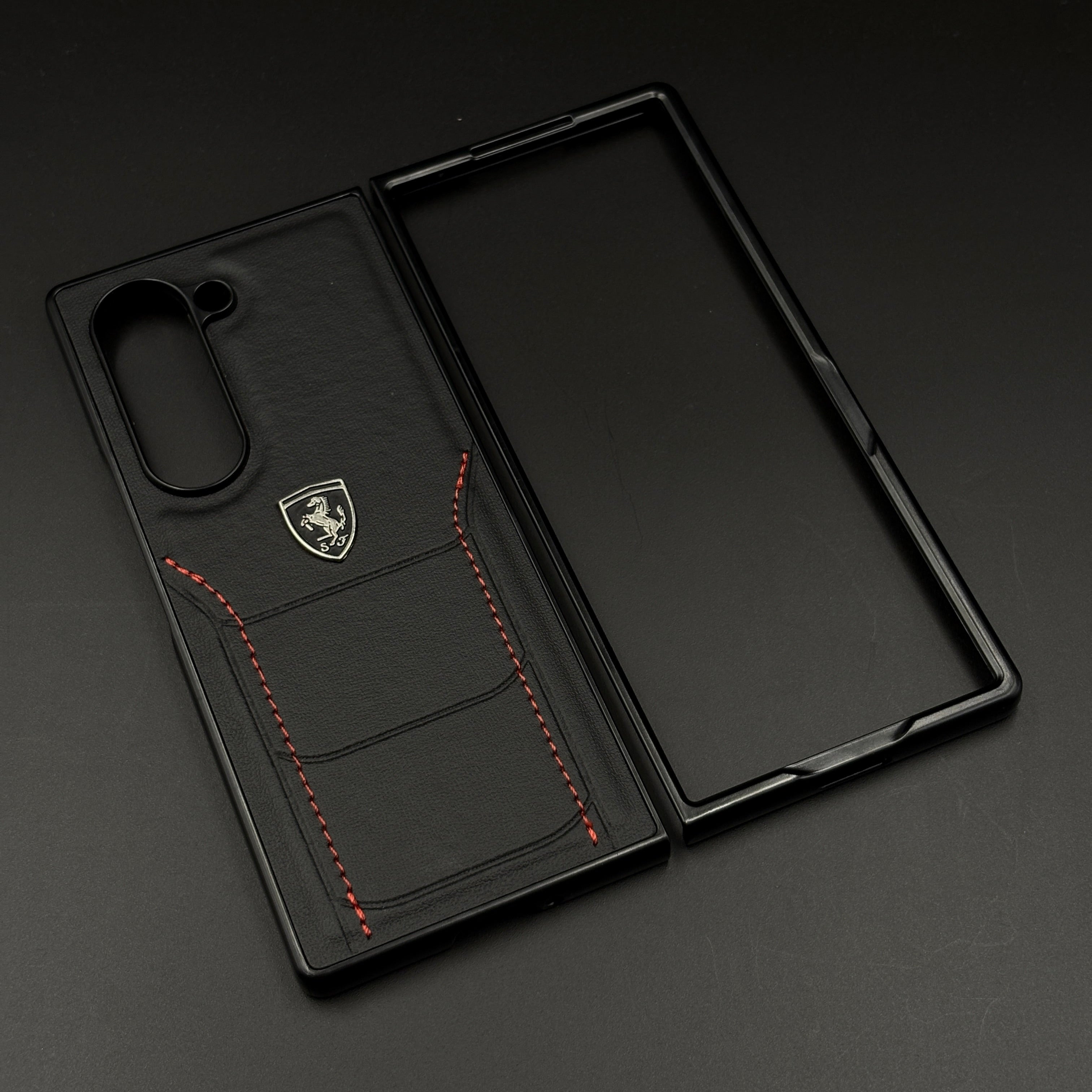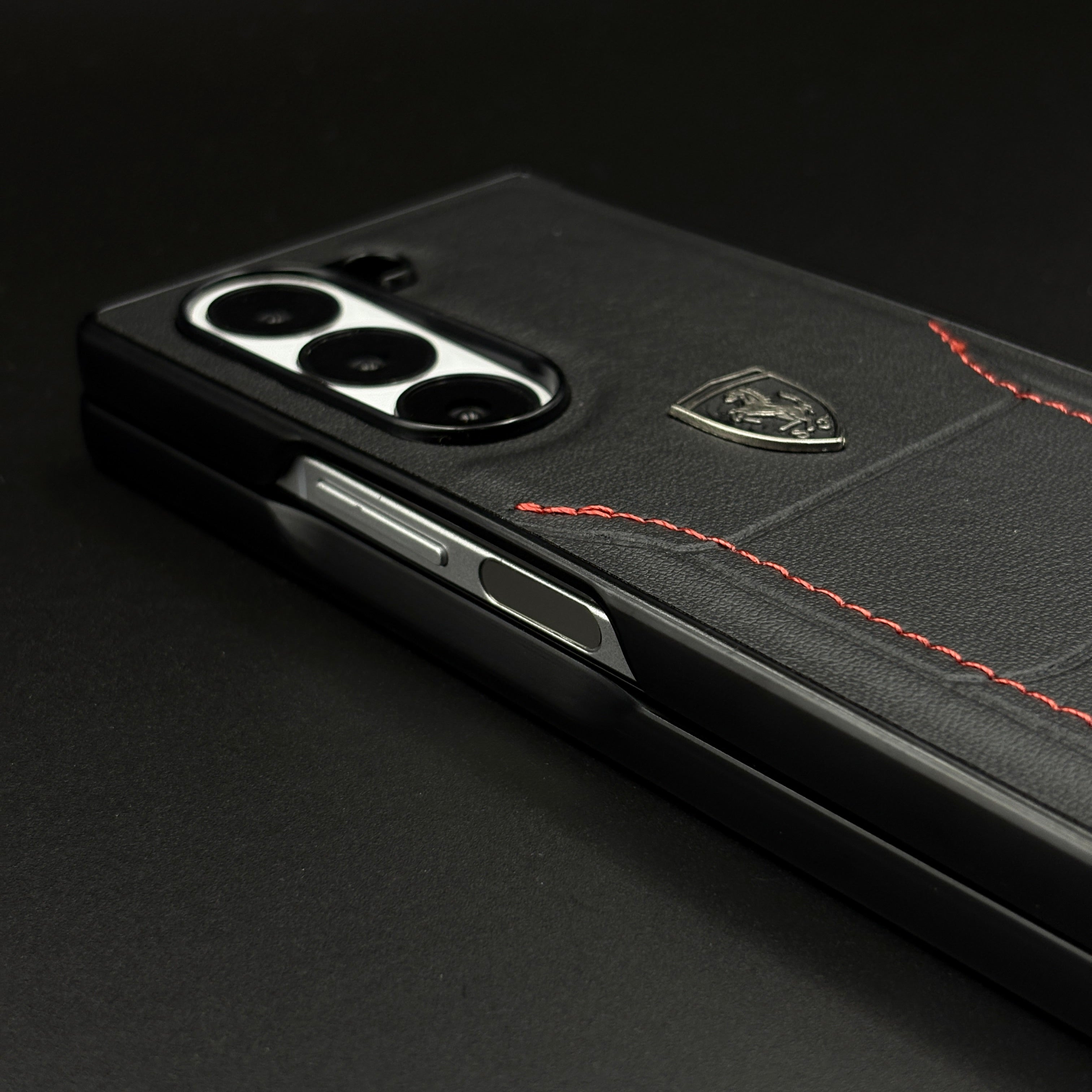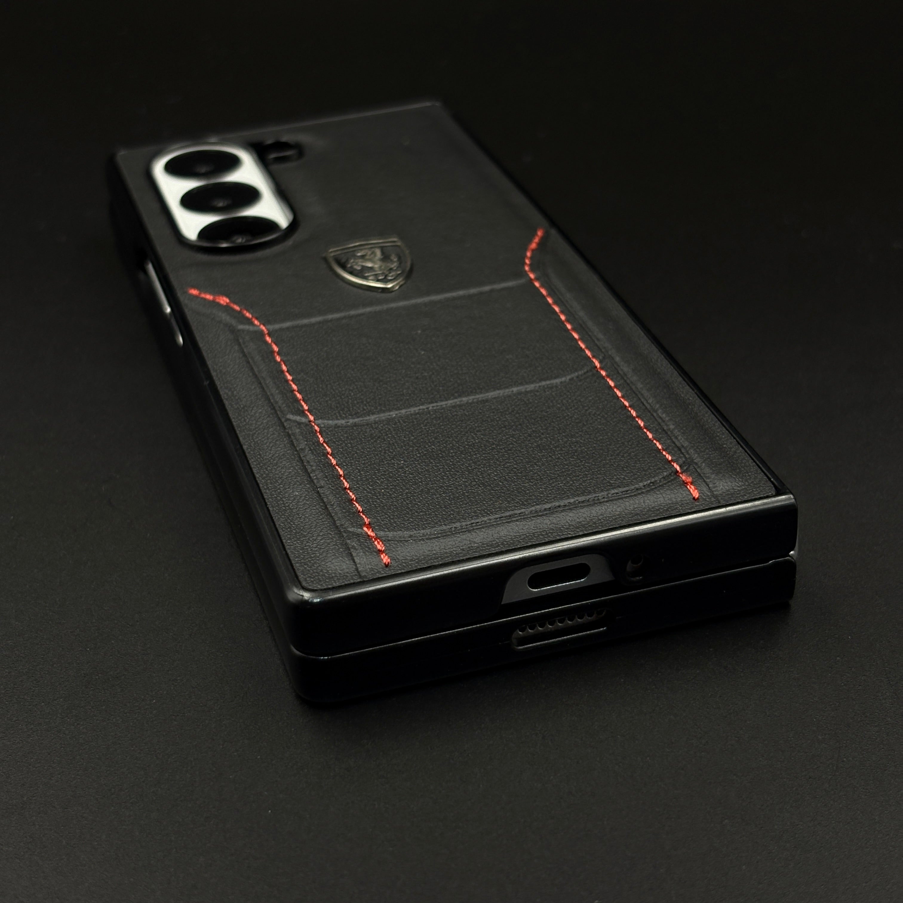 Detailed red stitching enhances the premium appeal, giving your phone a sporty yet luxurious vibe.