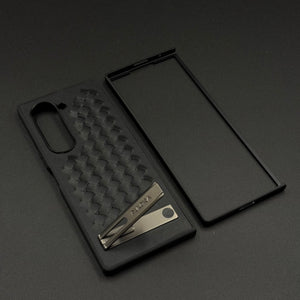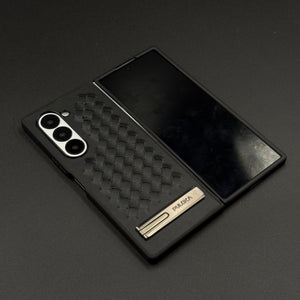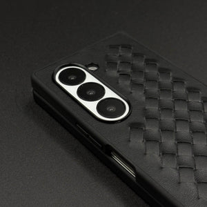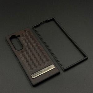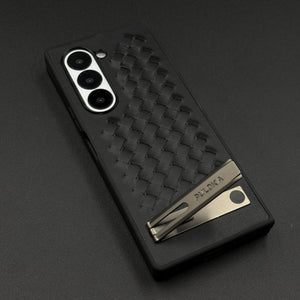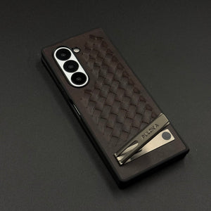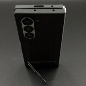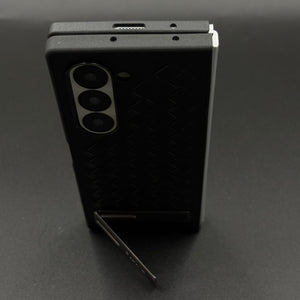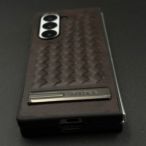 Premium Grid Leather Feel Case with Metal Kickstand For Samsung Galaxy Z Fold 6 | Woven Texture | Executive Style Protection