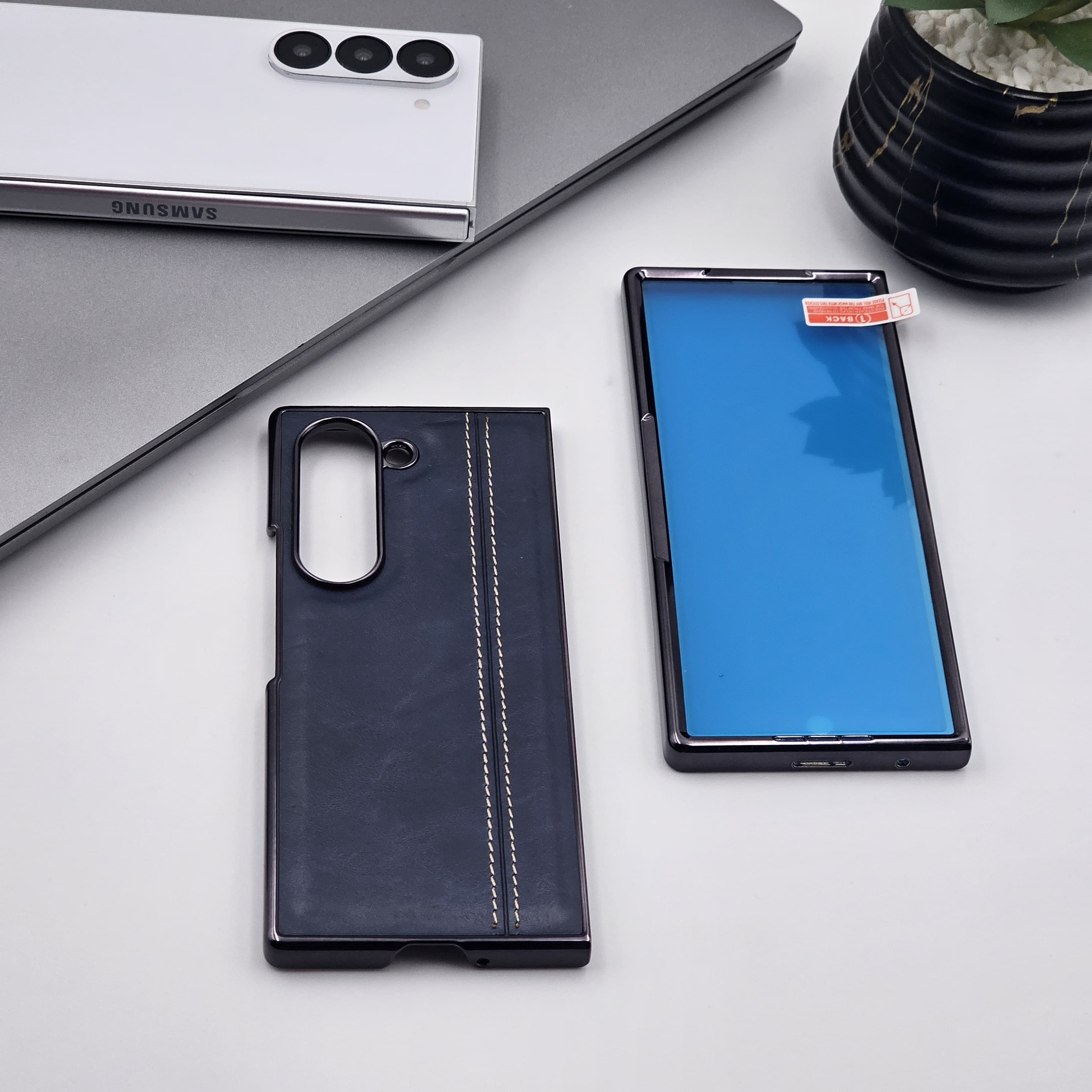 Samsung Galaxy Z Fold 6 Stitched Leather Case Front Screen Protector
