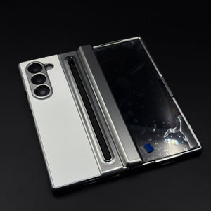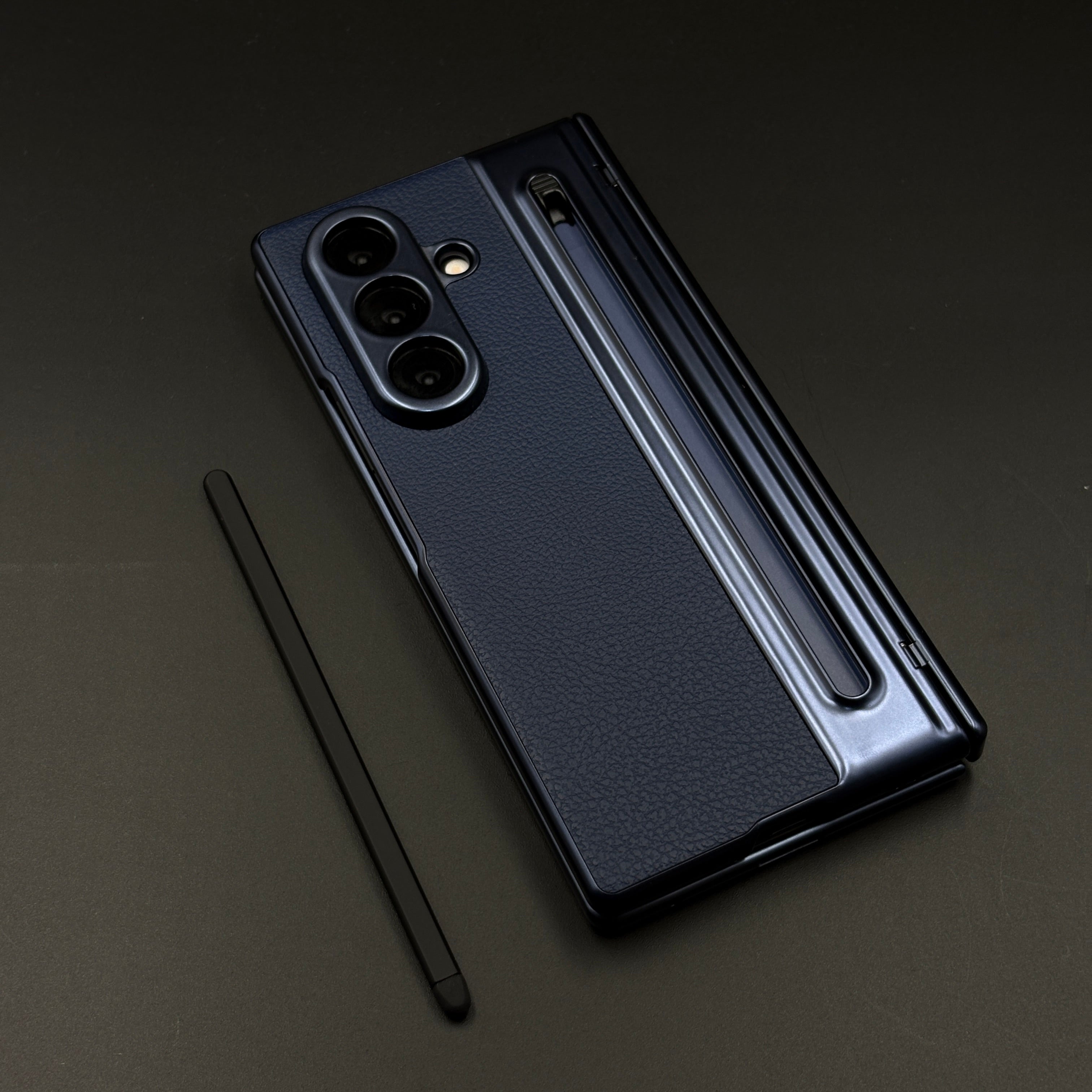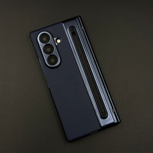 All-in-One Case | Leather Texture with Pen for Samsung Galaxy Z Fold 6 | Front Screen Protector & Side Hinge Protection