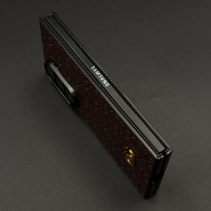 ๐ Elegant Design โ Designer-inspired pattern with gold-tone metallic emblem
