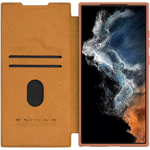 Samsung Galaxy S22 Ultra Camera Protection QIN Leather Flip Case Brown