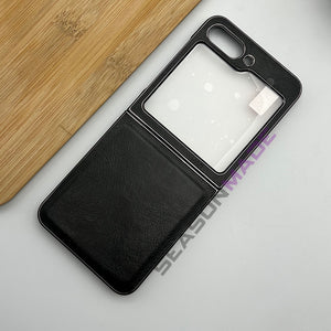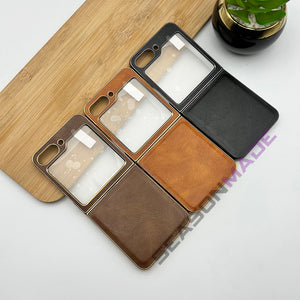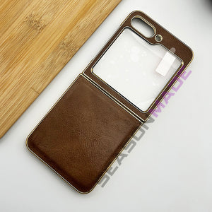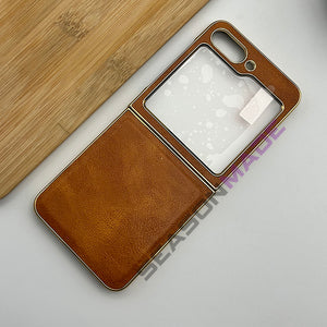 Samsung Z Flip 5 PU Leather Chrome Plated With Front Screen Protector Case Cover