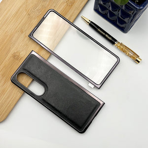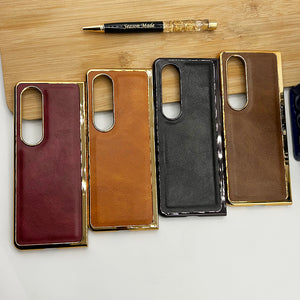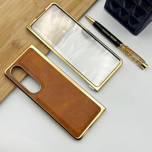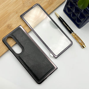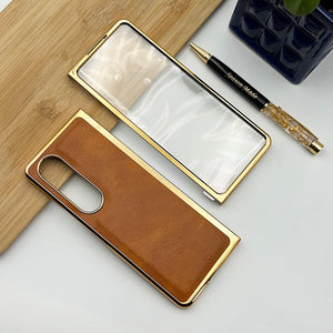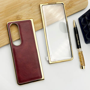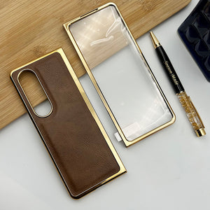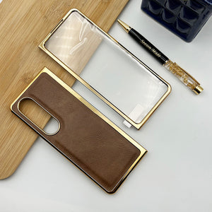 Samsung Z Fold 4 PU Leather Chrome Plated With Front Screen Protector Case Cover