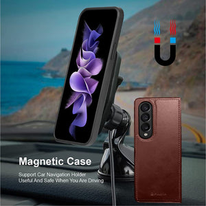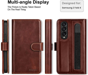 Samsung Z Fold 5 Leather Flip 2 in 1 Detachable Front And Back Wallet Case Cover S Pen Holder Brown